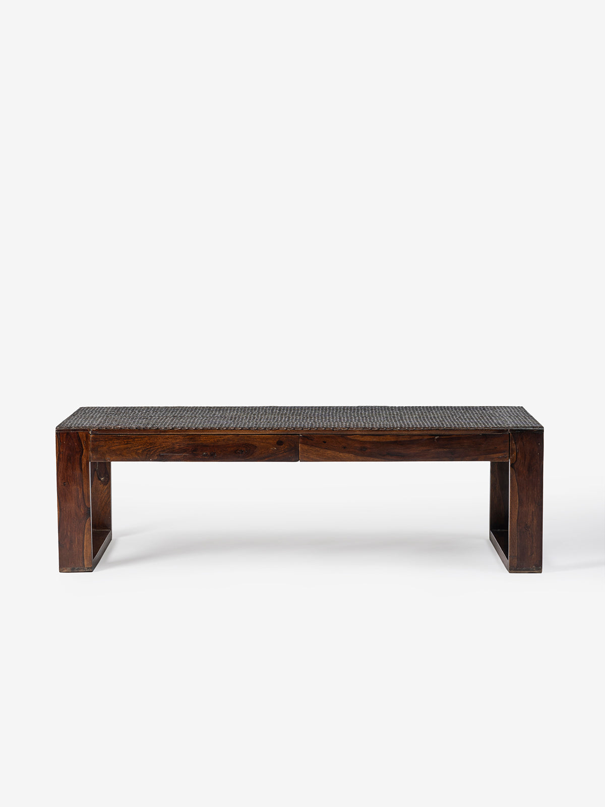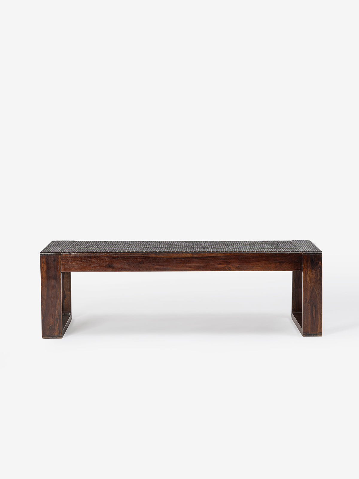 Manaslu Wooden Bone Inlay Queen Size Bed With Leg Board