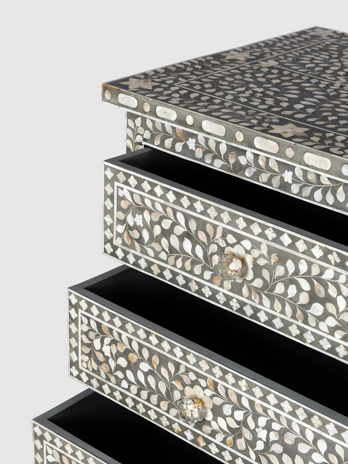 Manaslu Wooden Bone Inlay Queen Size Bed With Leg Board