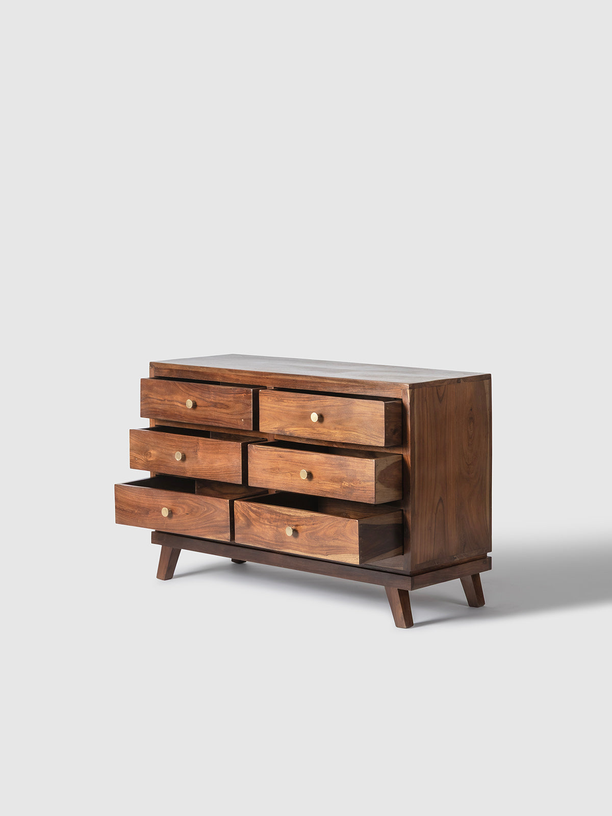 The Autsho Wooden Chest of Drawers is a timeless storage piece crafted to bring warmth and functionality to modern interiors. Made from solid wood, this chest features a rich natural grain and a clean mid-century inspired silhouette. Multiple spacious drawers provide practical storage for clothing, linens, and everyday essentials while keeping your space organized. Supported by tapered legs and finished with classic drawer knobs, the Autsho chest of drawers blends durability, craftsmanship, and understated elegance for bedrooms, living rooms, or entryways.
