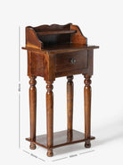 Ozero Side Table is crafted from mango wood and inspired by India's historic architecture. The rich colonial finish adds an elegant touch to any living room or bedroom, while also providing storage options. This piece seamlessly combines traditional design with practical functionality, making it a perfect addition to any home.