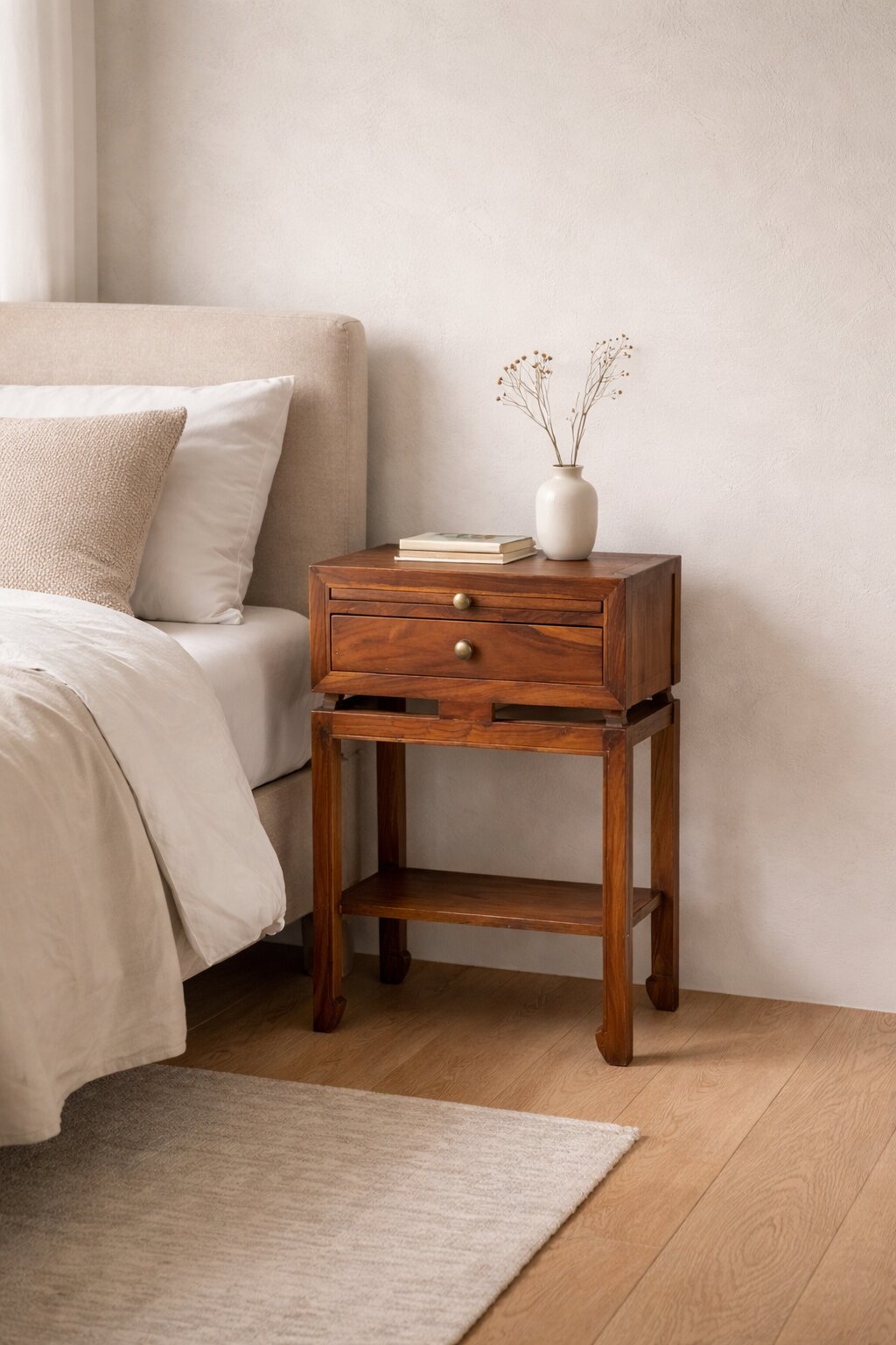The Sakegawa Wooden Side Table is a refined accent piece that blends compact storage with timeless craftsmanship. Made from solid wood, the table features a warm natural grain and a clean, structured silhouette. The upper drawer provides convenient storage for everyday essentials, while the open lower shelf offers additional space for books or decorative accents. Elevated on a sturdy wooden frame, the Sakegawa Side Table is perfect beside a sofa, armchair, or bedside, bringing both practicality and understated elegance to modern interiors.