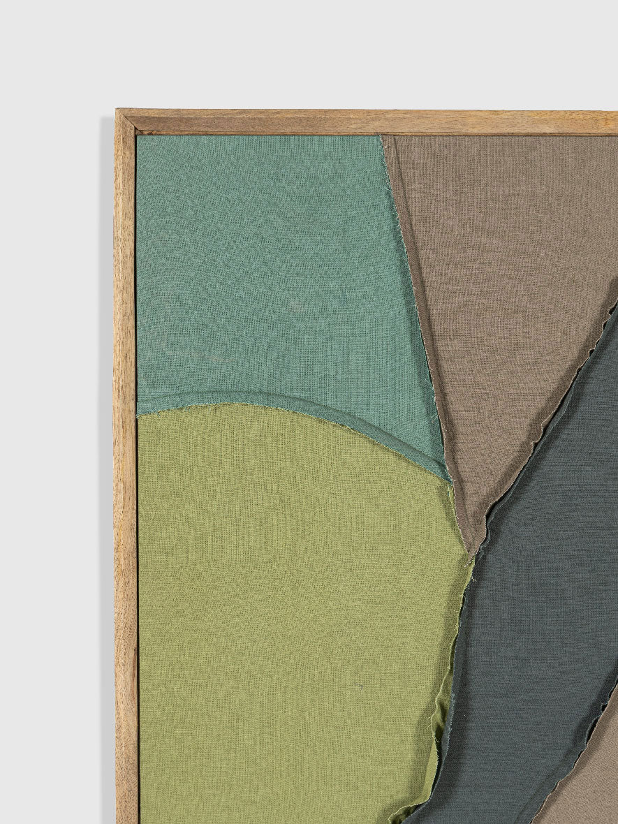 Add an earthy vibe to your interiors with this fabric patched wall art featuring layered organic curves in soothing green, beige, and teal tones. Handcrafted for texture and depth, it brings a nature-inspired, abstract elegance—perfect for modern and minimalist home décor.