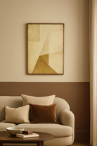 Golden Neutrality embodies the art of balance through its soft interplay of golden shades and warm neutral tones. The abstract geometry creates a layered depth, offering a quiet sophistication that feels both modern and timeless. This printed canvas artwork is designed to bring subtle elegance and a calming presence into your space.