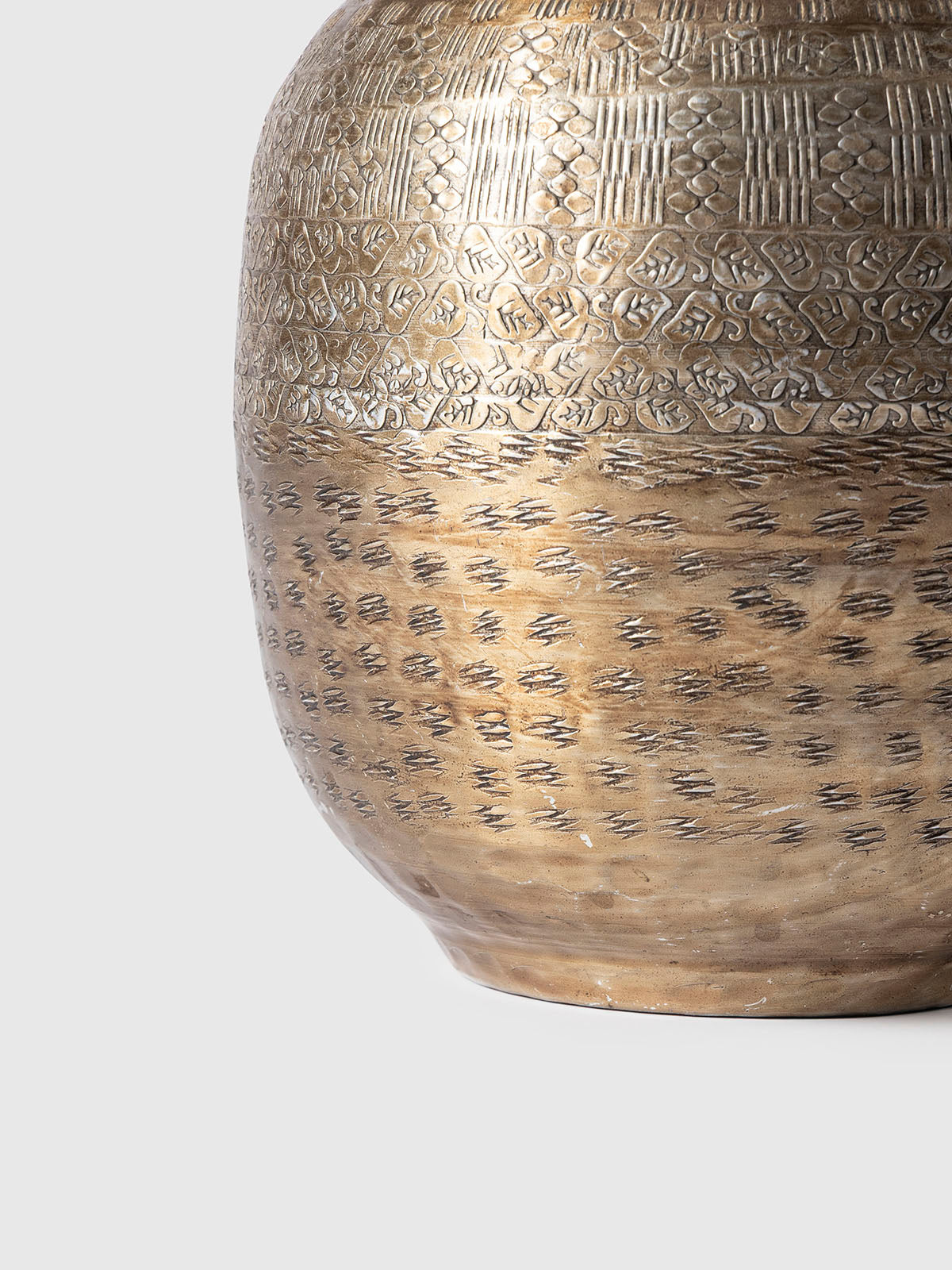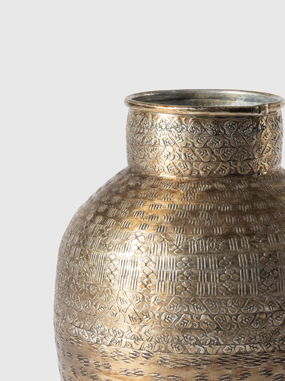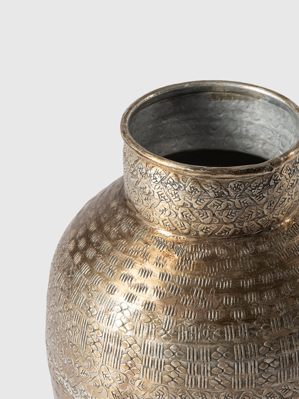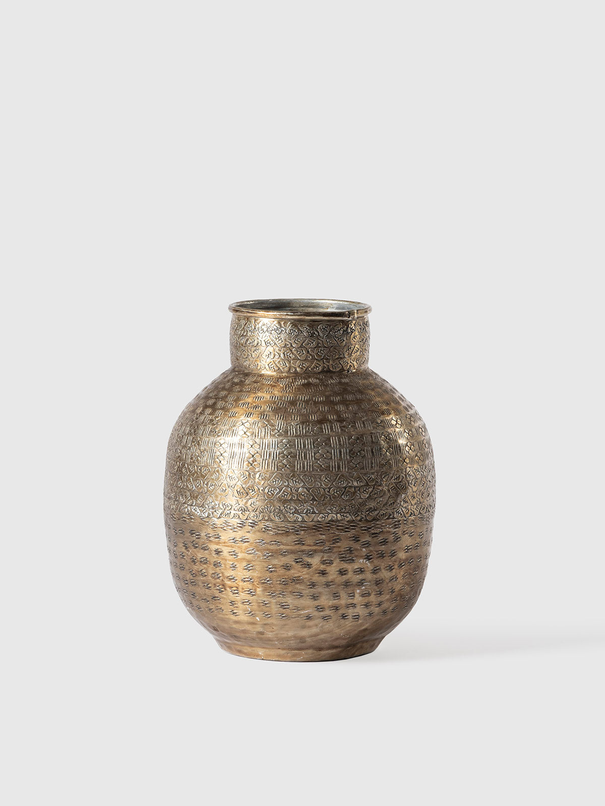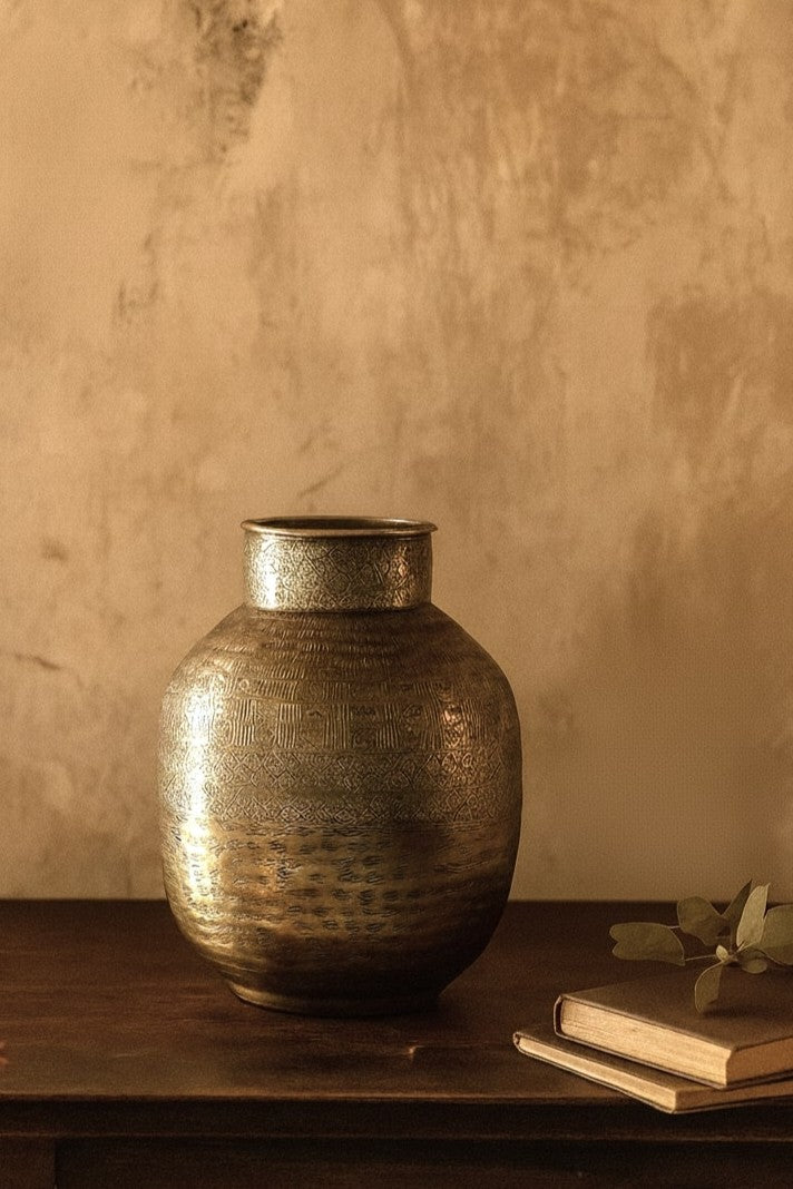 This antique-style brass coating vase is a true statement of heritage and craftsmanship. Hand-etched with intricate patterns, its textured surface adds depth, character, and timeless appeal. The warm metallic sheen brings a touch of rustic elegance, making it perfect as a standalone décor piece or to hold dried florals. A sophisticated accent for homes that embrace artistry and tradition.