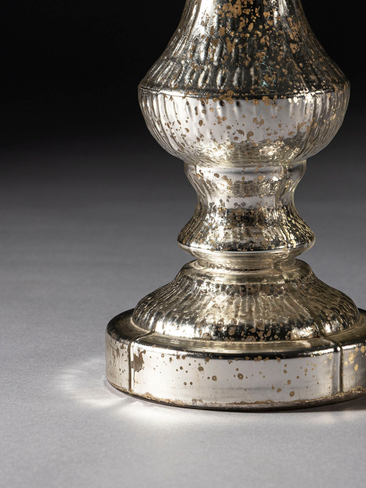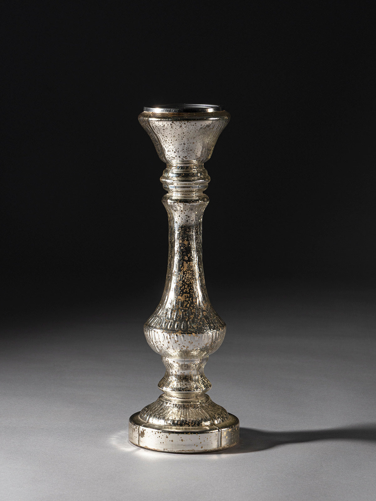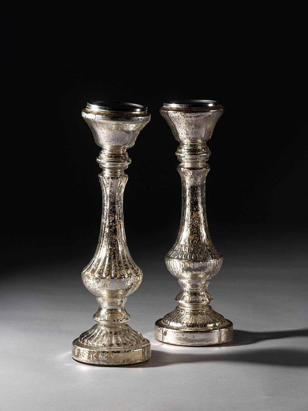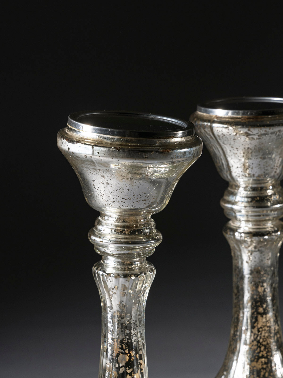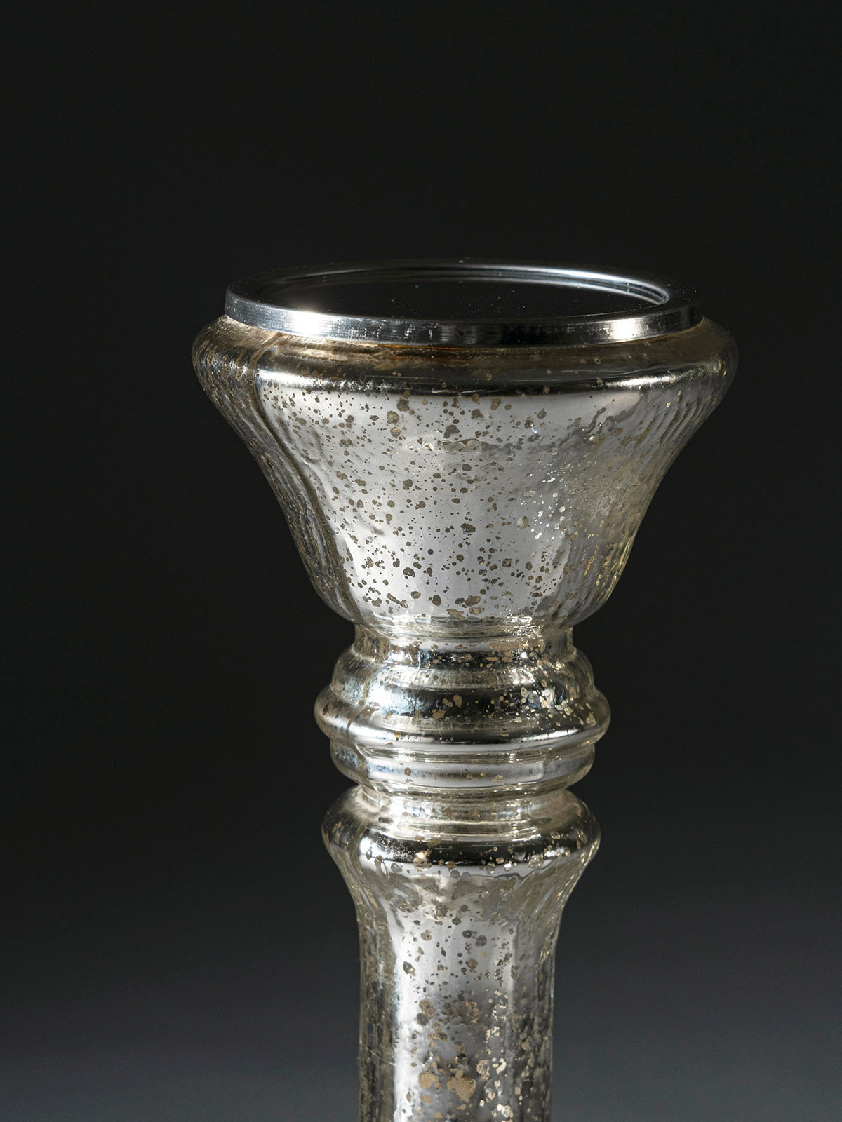 Bring vintage glamour to your décor with the Saussira Glass Candle Holder, designed in lustrous mercury glass with intricate detailing. Its tall silhouette captures candlelight dramatically, making it a striking centerpiece or layered accent. Ideal for festive gatherings, romantic evenings, or everyday elegance, this pair enhances interiors with warmth and character. A timeless addition that balances classic craftsmanship with modern sophistication.