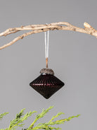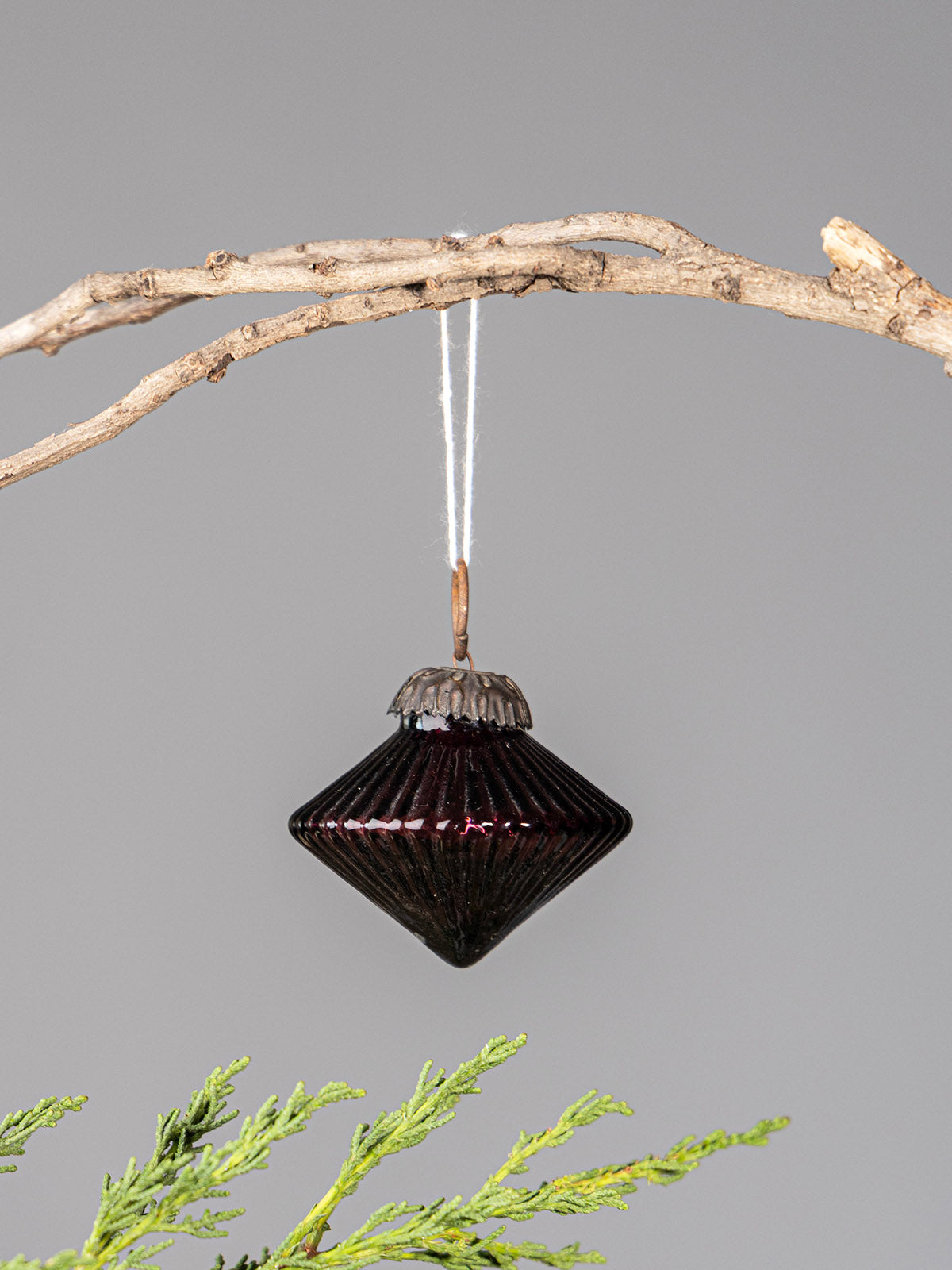 Bring bold elegance to your festive décor with the Singtom Mercury Christmas Ornaments. Crafted in a deep plum black tone, this ornament features a striking diamond shaped silhouette with fine ribbed detailing that adds depth and sophistication. The mercury glass finish creates a gentle old world glow that reflects beautifully under warm Christmas lights.