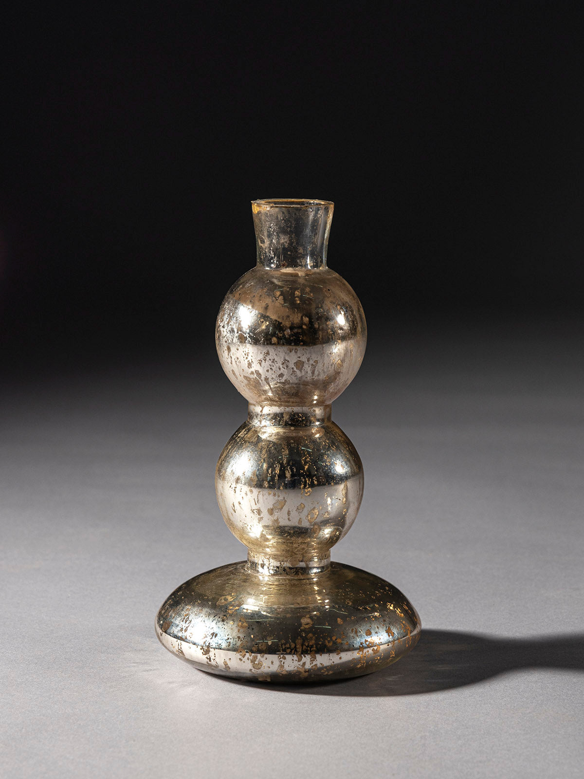 Hand-finished in antique mercury glass, the Rheum Glass Candle Holder brings refined artistry to your décor. Its sculptural form reflects light in captivating ways, turning candlelight into a glowing centerpiece. Perfect for mantels, consoles, or festive displays, it combines bold design with timeless sophistication. A decorative essential that balances functionality with elegance, making it a radiant addition to modern and traditional interiors alike.