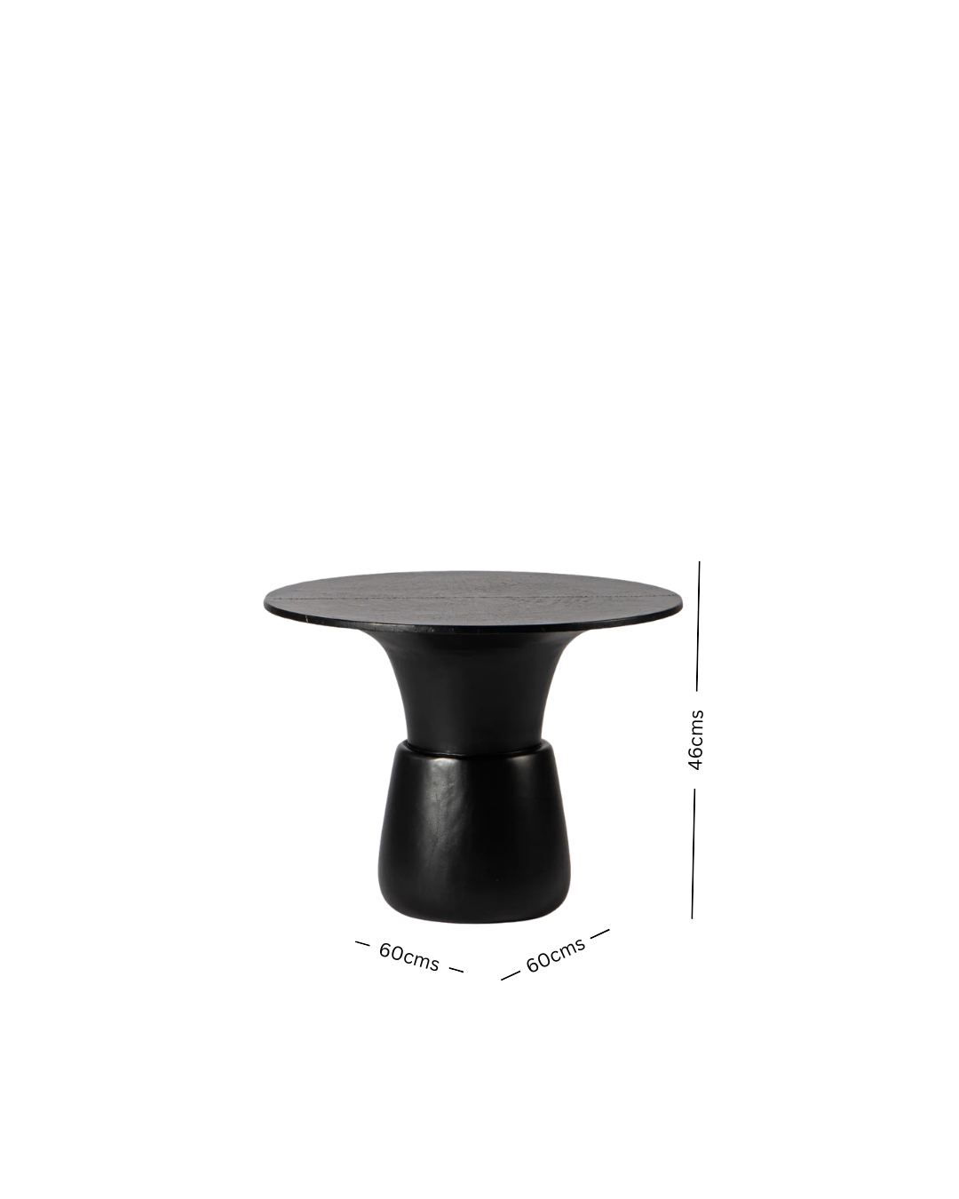 This sculptural black table brings a bold, contemporary edge to any room. Its smooth, hand-finished base and wide, rounded top create a striking silhouette that feels both grounded and refined. Perfect as a centre table or statement piece, it adds depth and modern character to curated spaces. A timeless form that elevates your home with quiet, effortless style—made to be admired every day.