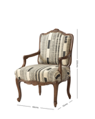 Elegantly crafted with a carved wooden frame, this accent chair blends vintage French charm with tribal-inspired upholstery. The bold monochrome patterns add a contemporary twist to the classic silhouette, making it a striking piece for eclectic or modern interiors. Perfect for adding character to your space, it’s where heritage design meets artistic flair and comfort.