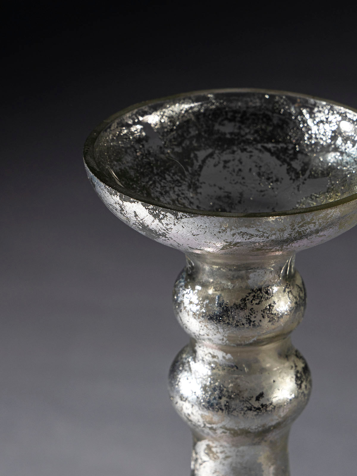 The Nardora Glass Candle Holder is a timeless accent crafted in antique mercury glass with a graceful pedestal silhouette. Its reflective finish enhances candlelight, creating a warm and inviting glow. Perfect for dining tables, mantels, or festive décor, it adds sophistication and charm to any setting. A versatile piece that blends vintage artistry with modern elegance, making it ideal for both everyday use and celebratory occasions.