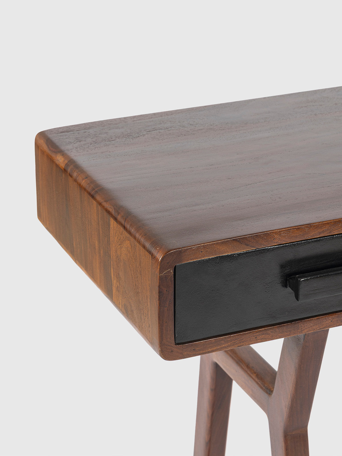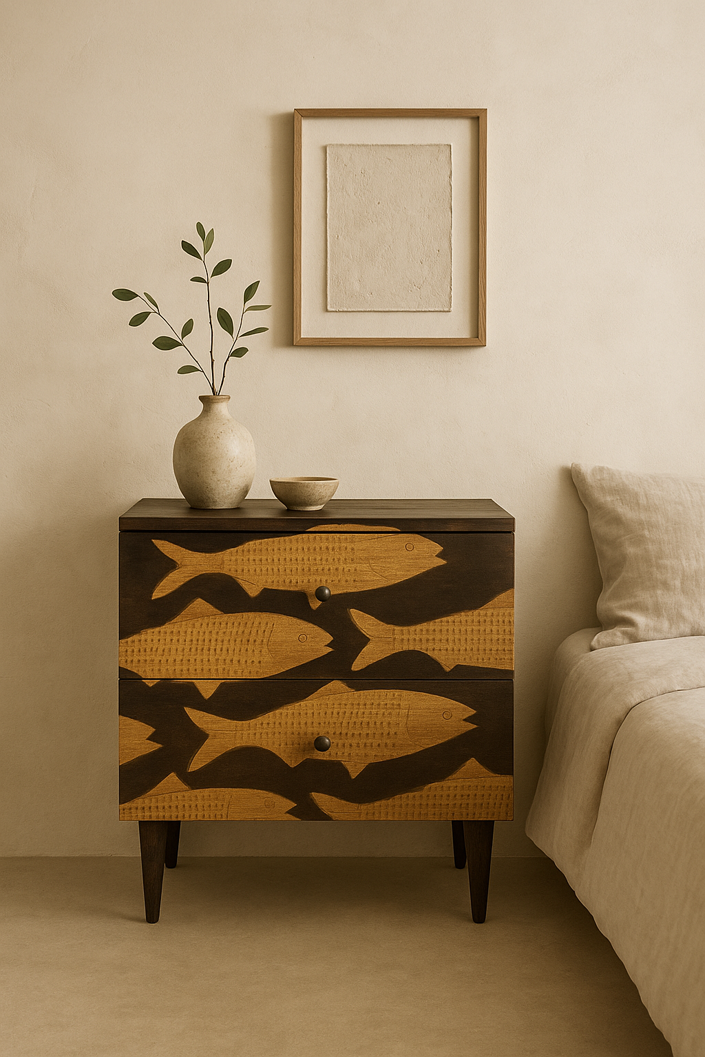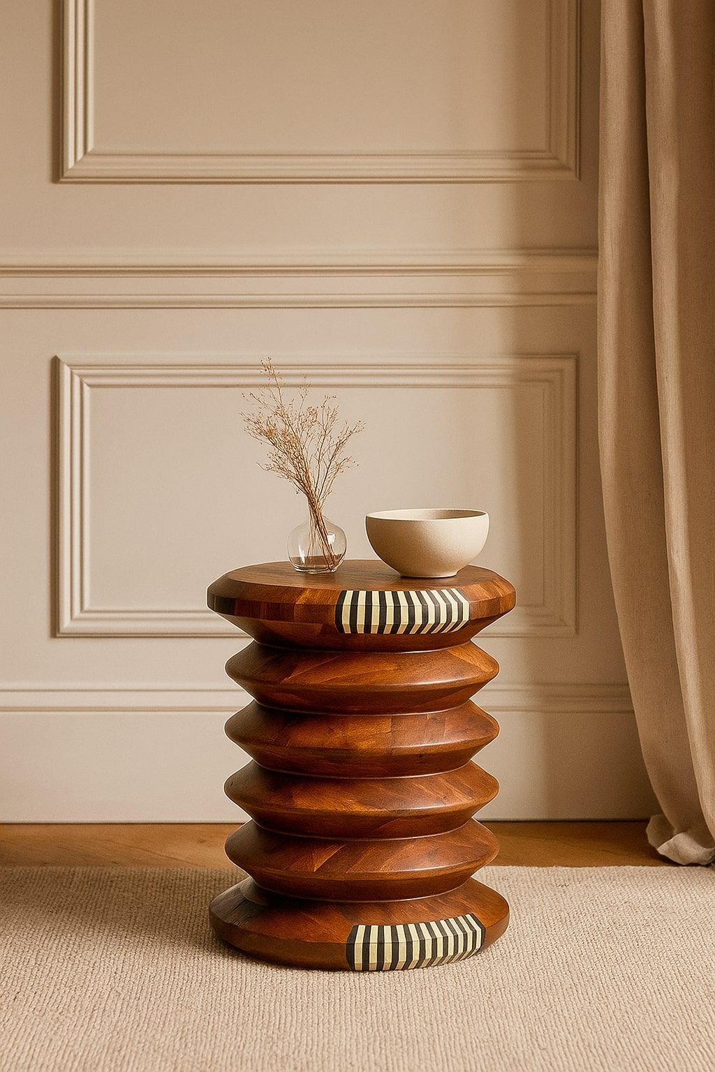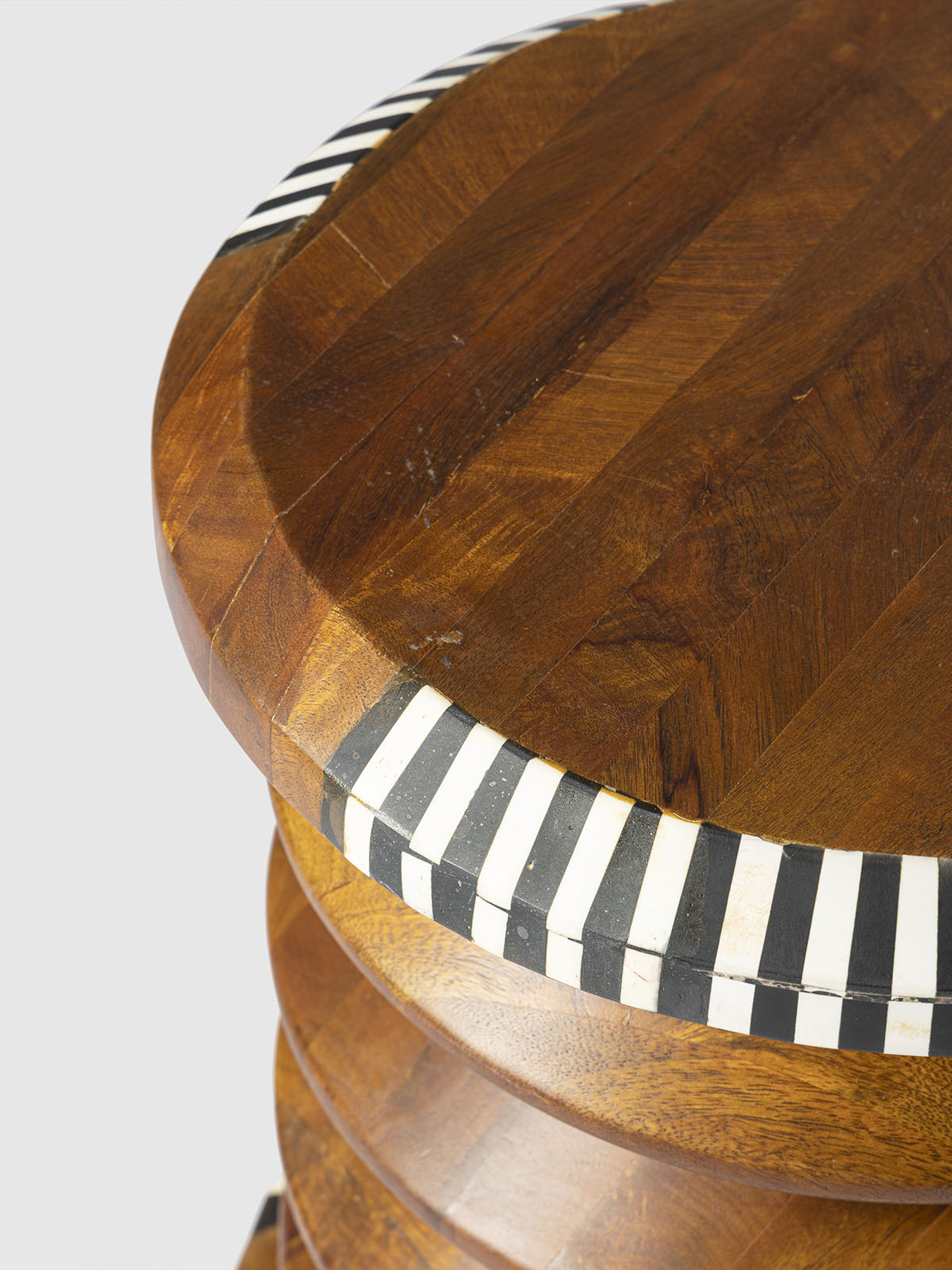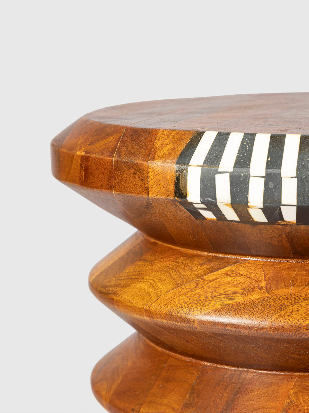 Manaslu Wooden Bone Inlay Queen Size Bed With Leg Board