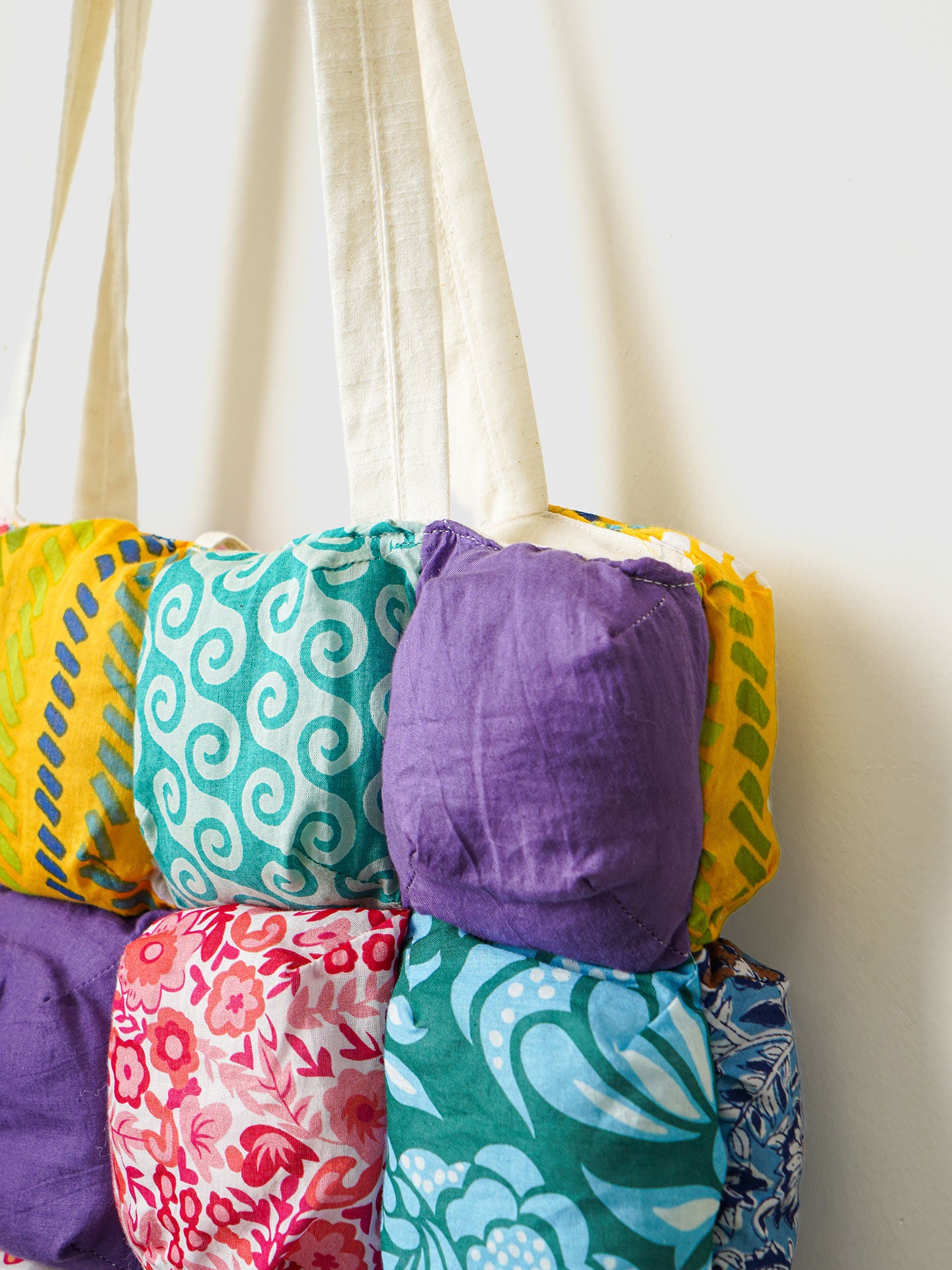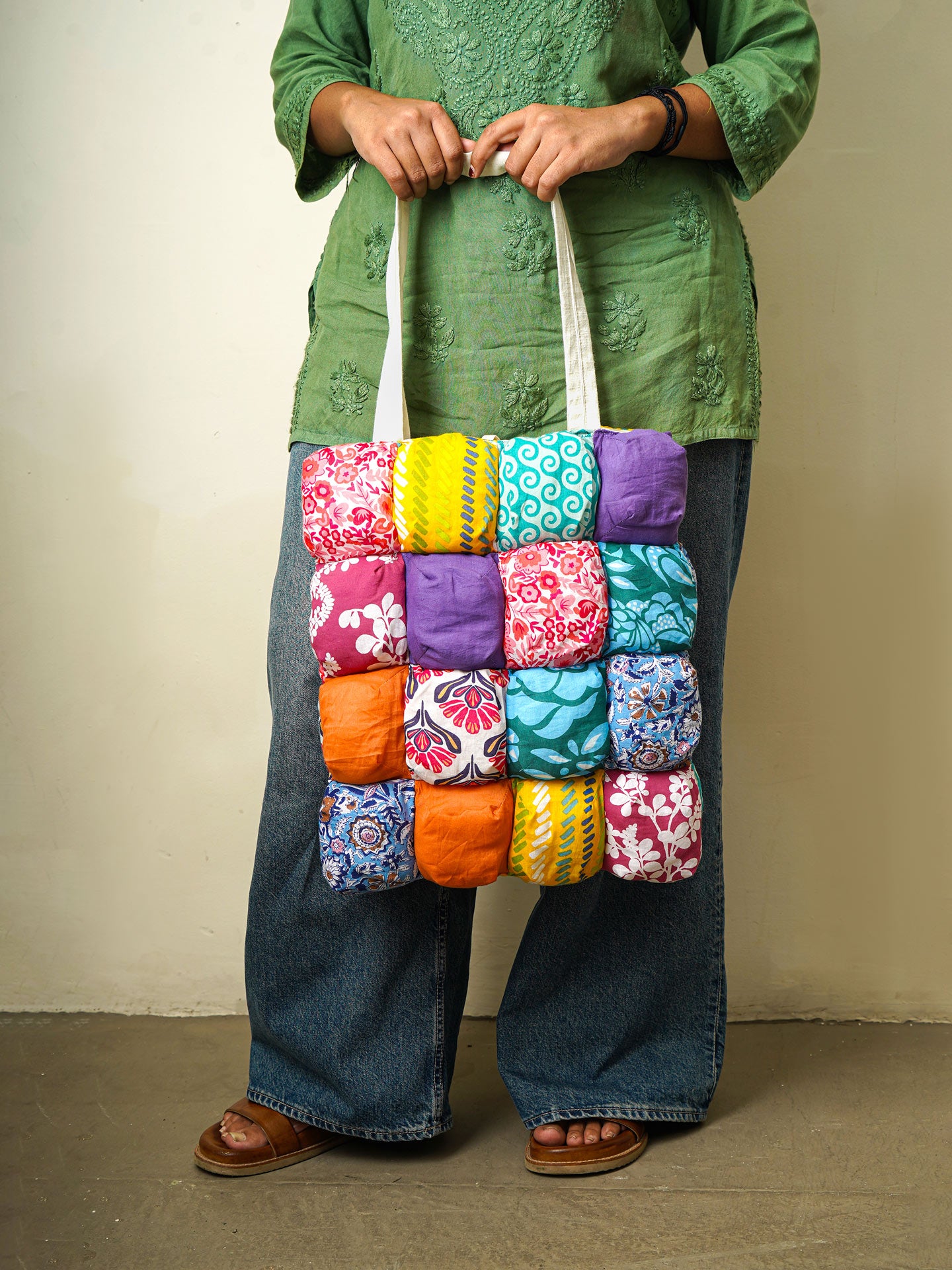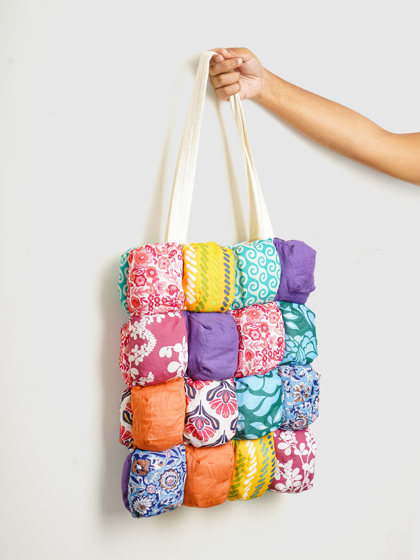 Designed for the vibrant soul, Bag of Giggles Tote celebrates color, texture, and individuality. Handcrafted with quilted patchwork squares, this playful cotton tote is roomy, lightweight, and versatile—perfect for daily errands, casual outings, or weekend escapes.