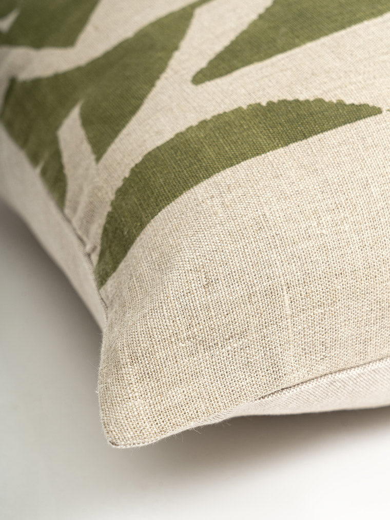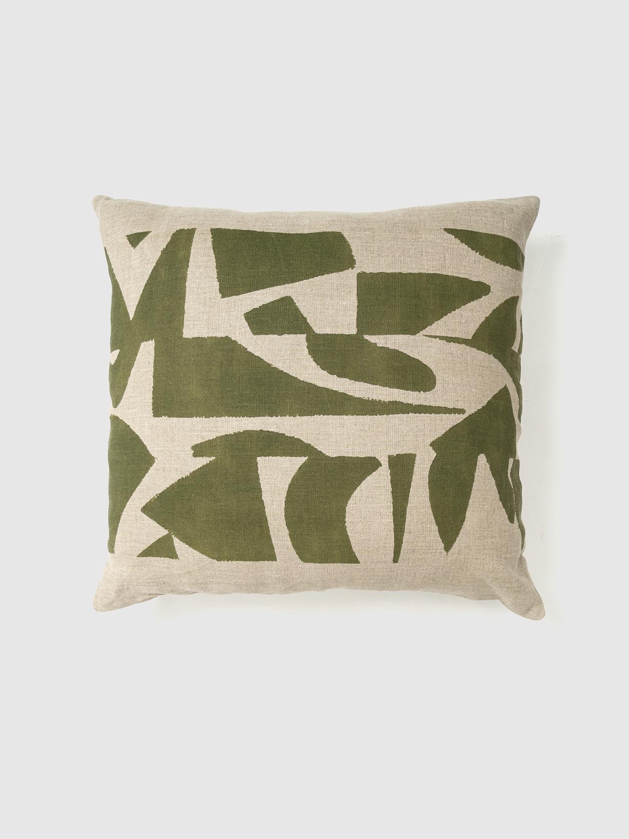 Elevate your living space with this modern decorative pillow featuring an abstract green print on a natural linen base. Perfect for adding a touch of contemporary artistry and comfort to any home decor. Ideal for sofas, chairs, or bedding arrangements. Handmade for superior quality and style.