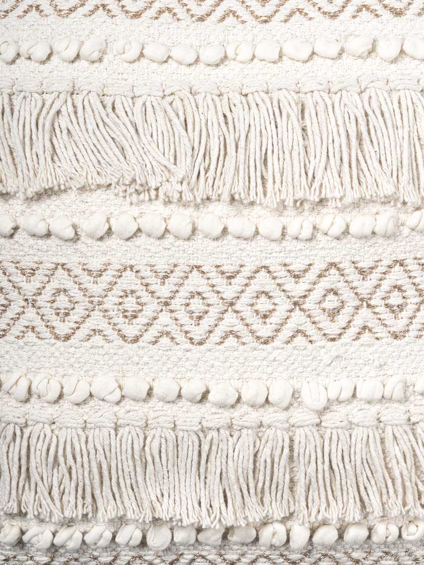 This cushion cover features a stunning blend of intricate geometric patterns and soft fringe detailing, perfect for enhancing a cozy, bohemian aesthetic. Crafted in neutral tones, it effortlessly complements a range of decor styles, adding texture and warmth to living rooms, bedrooms, or lounge spaces. Ideal for creating a relaxed, stylish atmosphere.