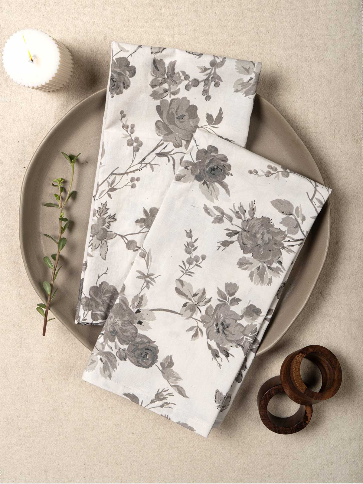 Step into a garden of tranquility with Broti, our beautifully crafted digital printed napkin. Its soft gray palette blooms with delicate floral patterns, creating an atmosphere of serene elegance for your table setting.