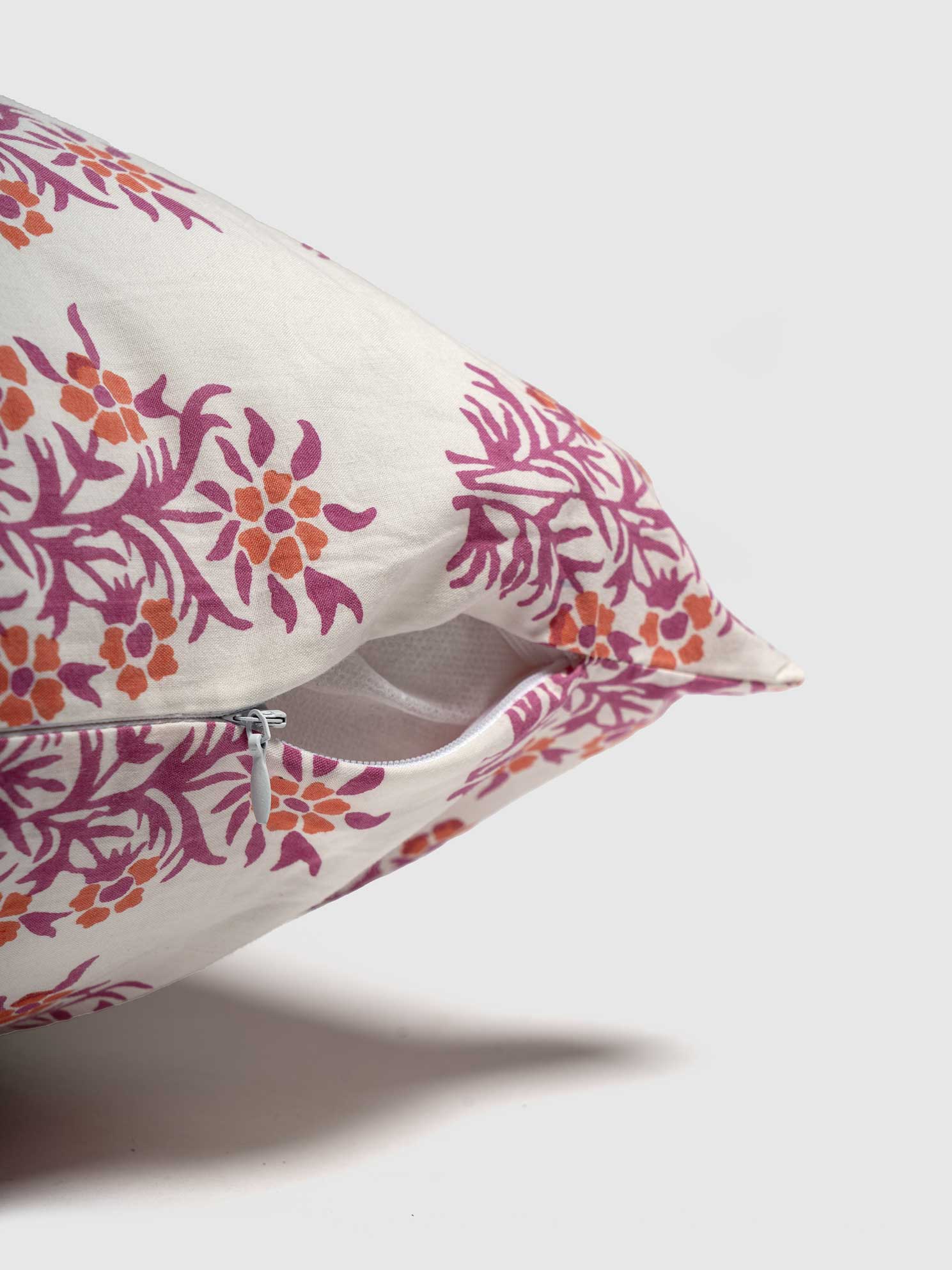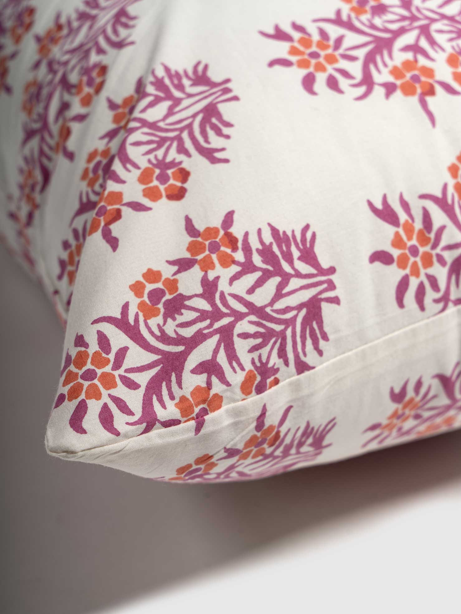 Add a touch of artistry to your home decor with this vibrant hand-printed Cushion Cover. Featuring a striking floral pattern in pink and orange, this high-quality, handmade piece effortlessly elevates any space. Perfect for modern or traditional settings, it is a unique addition that showcases fine craftsmanship.