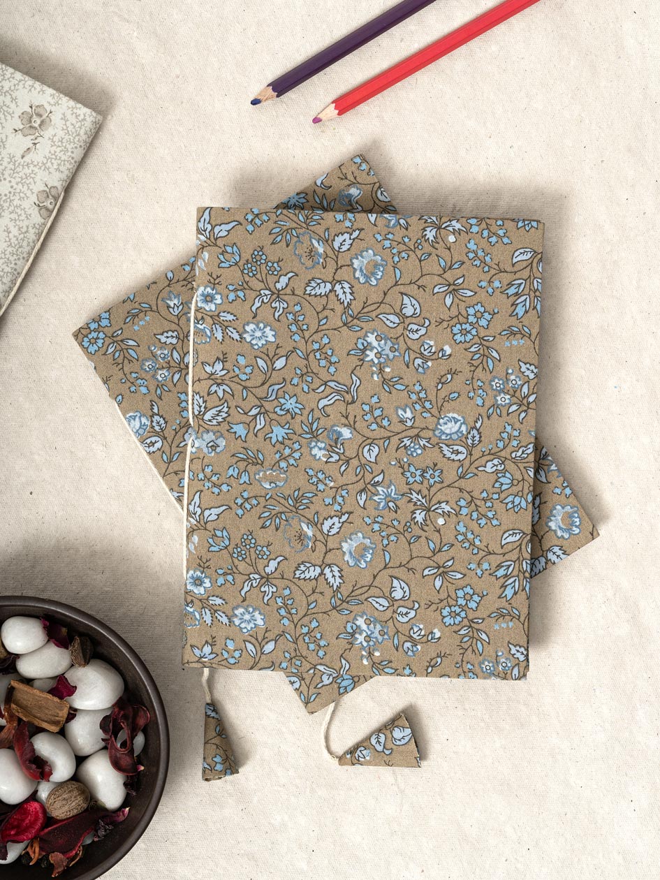 Handcrafted fabric-covered journals, designed in India, perfect for capturing thoughts, sketches, and daily notes. Featuring artisanal prints, including florals and stripes, these notebooks add a touch of elegance to your writing experience. Ideal for personal use or gifting, each journal is crafted with care, making it a timeless keepsake for writers, artists, and dreamers.