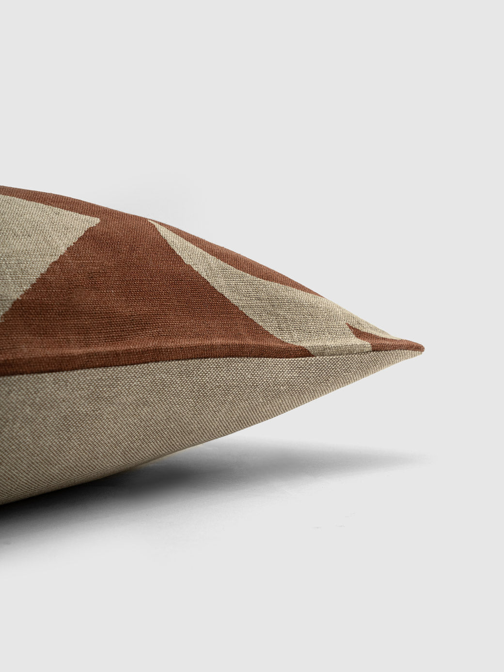 Elevate your décor with this abstract geometric cushion cover in warm rust tones on a neutral beige background. Crafted from premium, durable fabric, it’s perfect for modern interiors. Handmade for a unique touch, it enhances living rooms, bedrooms, or accent chairs with artistic elegance and contemporary style.