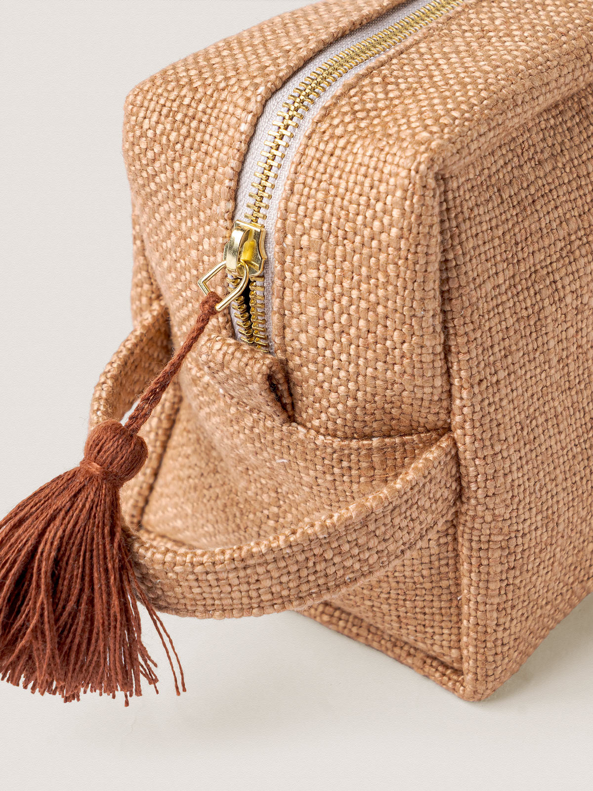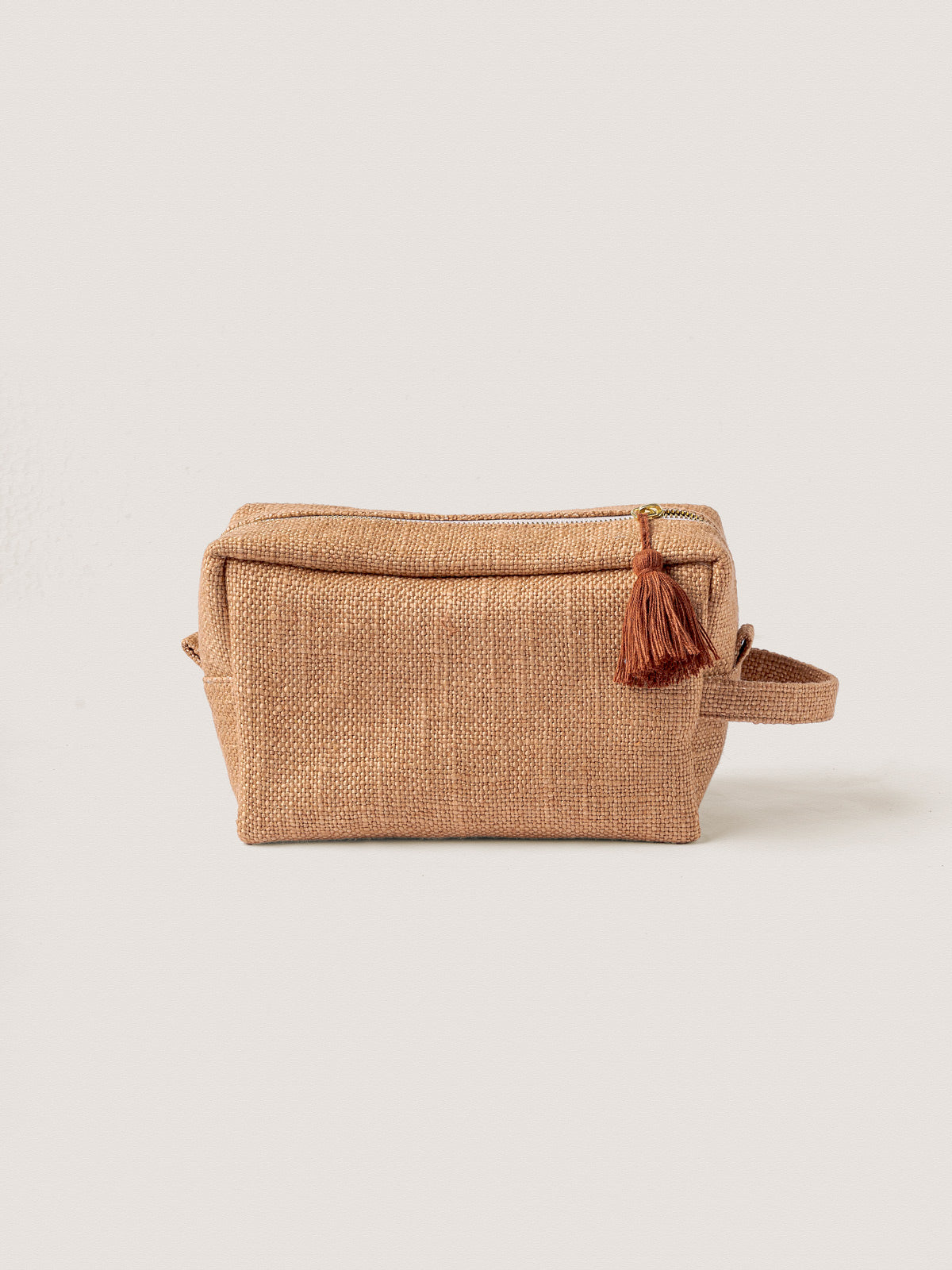 Finished with a smooth zip closure and a subtle tassel detail, it balances function with understated style. Compact yet spacious, it slips easily into a tote or suitcase—made to move with you, day to night.