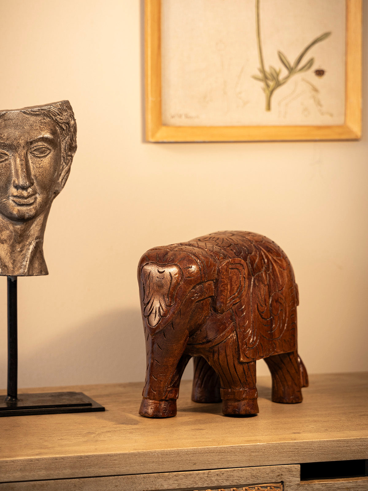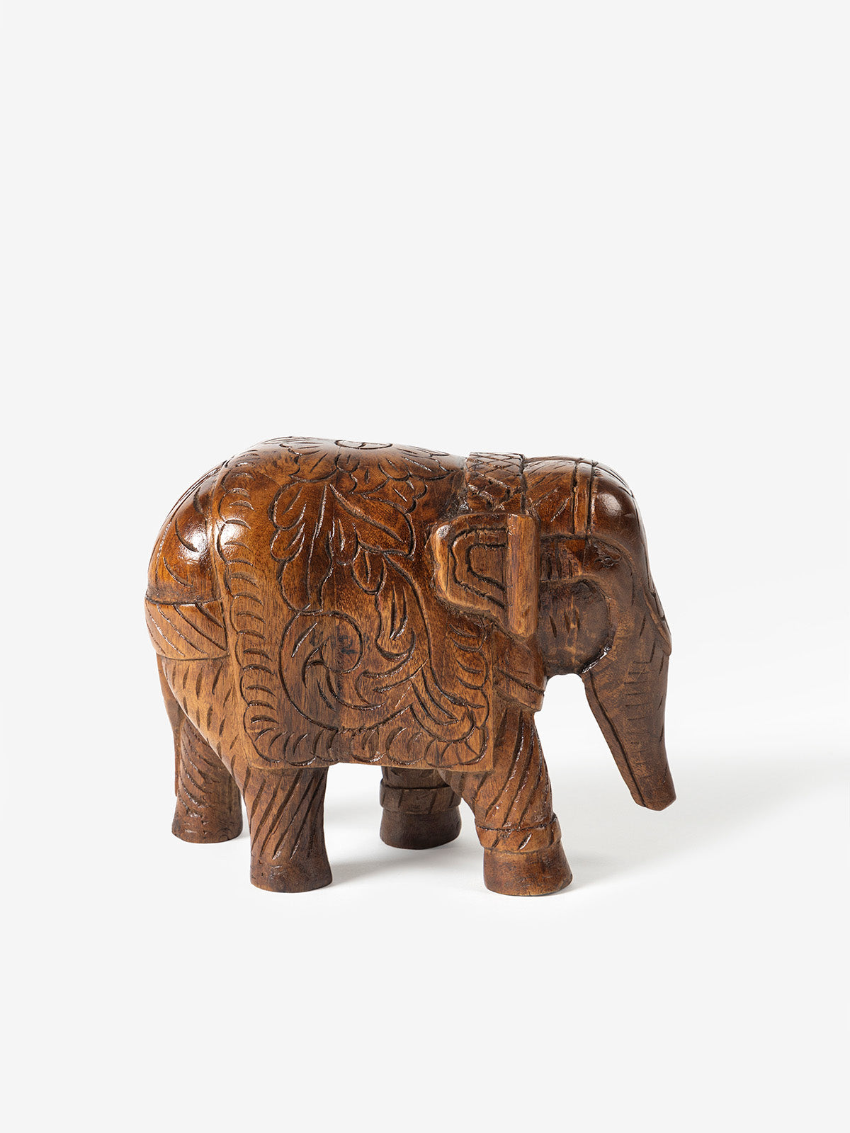 Eravat is our beautifully carved wooden elephant, showcasing intricate floral details and a rich warm colonial finish. Catering to the cultural, religious and symbolic meaning, the elephant is designed in a standing pose portraying royalty and strength.