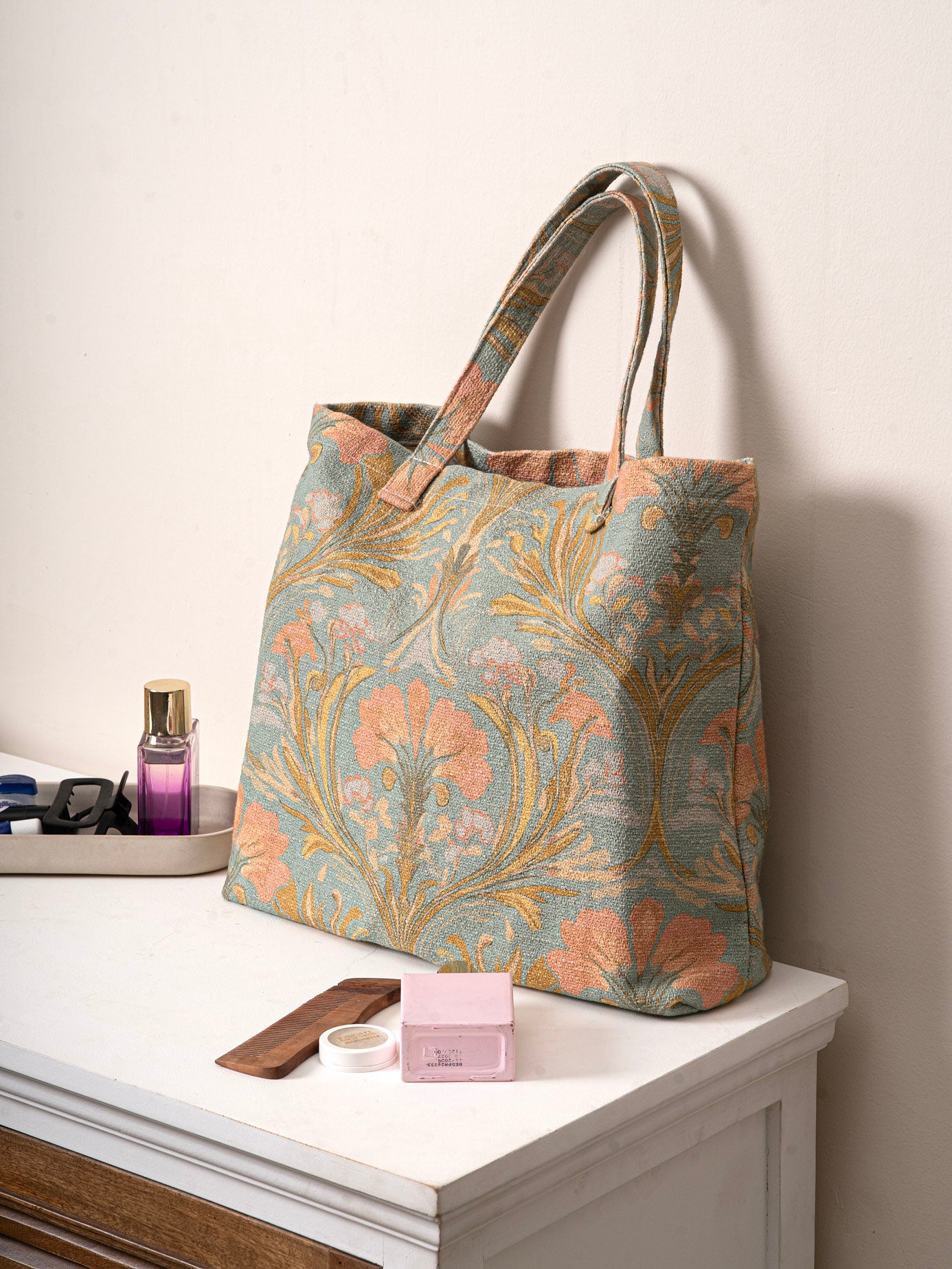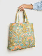 We call it Jungle & Juju because it brings instant good vibes. Spacious enough for your laptop, lunchbox, market hauls, and those “just in case” extras, this tote is your daily cheerleader. The playful jungle floral print keeps things bright and grounded. Work runs, errands, chai dates – it’s your carry-all with a touch of wild magic.