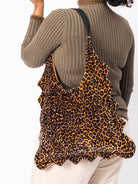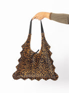 Meet the Leopard Energy Only Tote, a playful leopard print tote bag made for those who love standing out and doing the most. Designed with an all over spotted pattern and dramatic ruffle detailing, this statement tote brings bold personality and effortless charm to everyday looks. It is unapologetically fun and impossible to ignore.