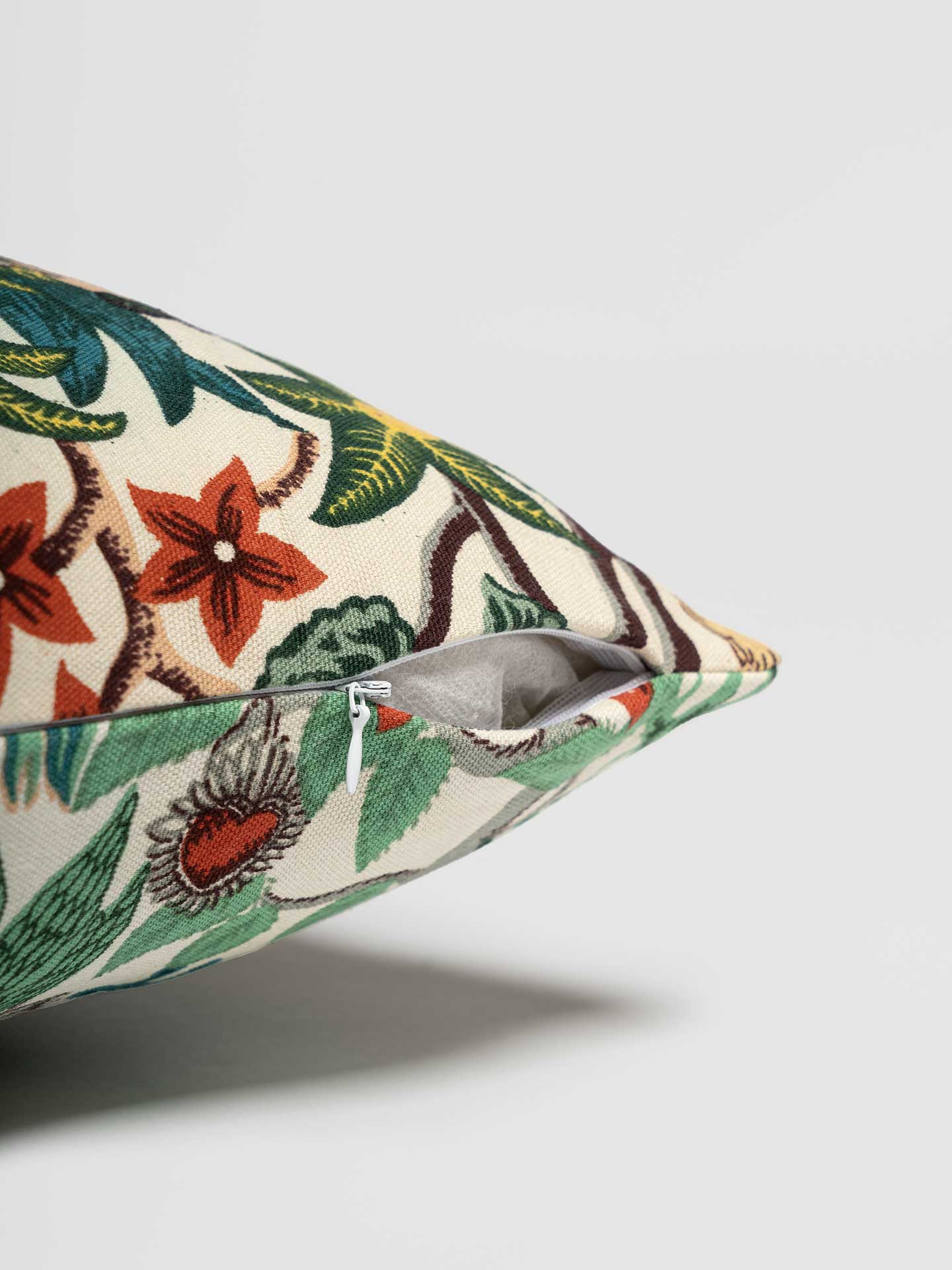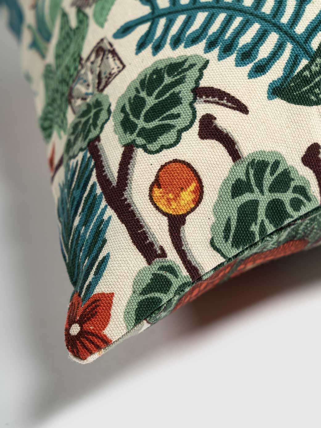Add a touch of exotic flair to your home with this vibrant hand printed Cushion Cover, featuring a colorful and intricate design inspired by tropical landscapes. Perfect for living rooms, bedrooms, or outdoor spaces, this unique cover brings a lively and artistic element to any decor, enhancing your space with its bold and captivating pattern.
