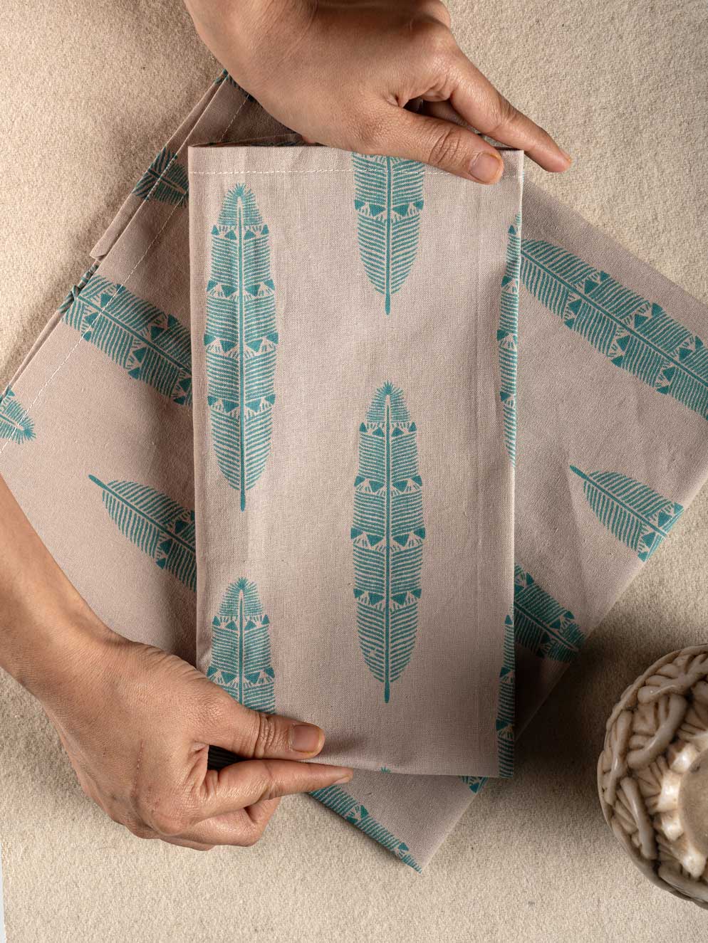 Introducing Parung, our digitally printed table napkin that fuses modern aesthetics with traditional motifs. Featuring a soothing teal hue, it offers a vibrant yet calm touch to your dining decor.