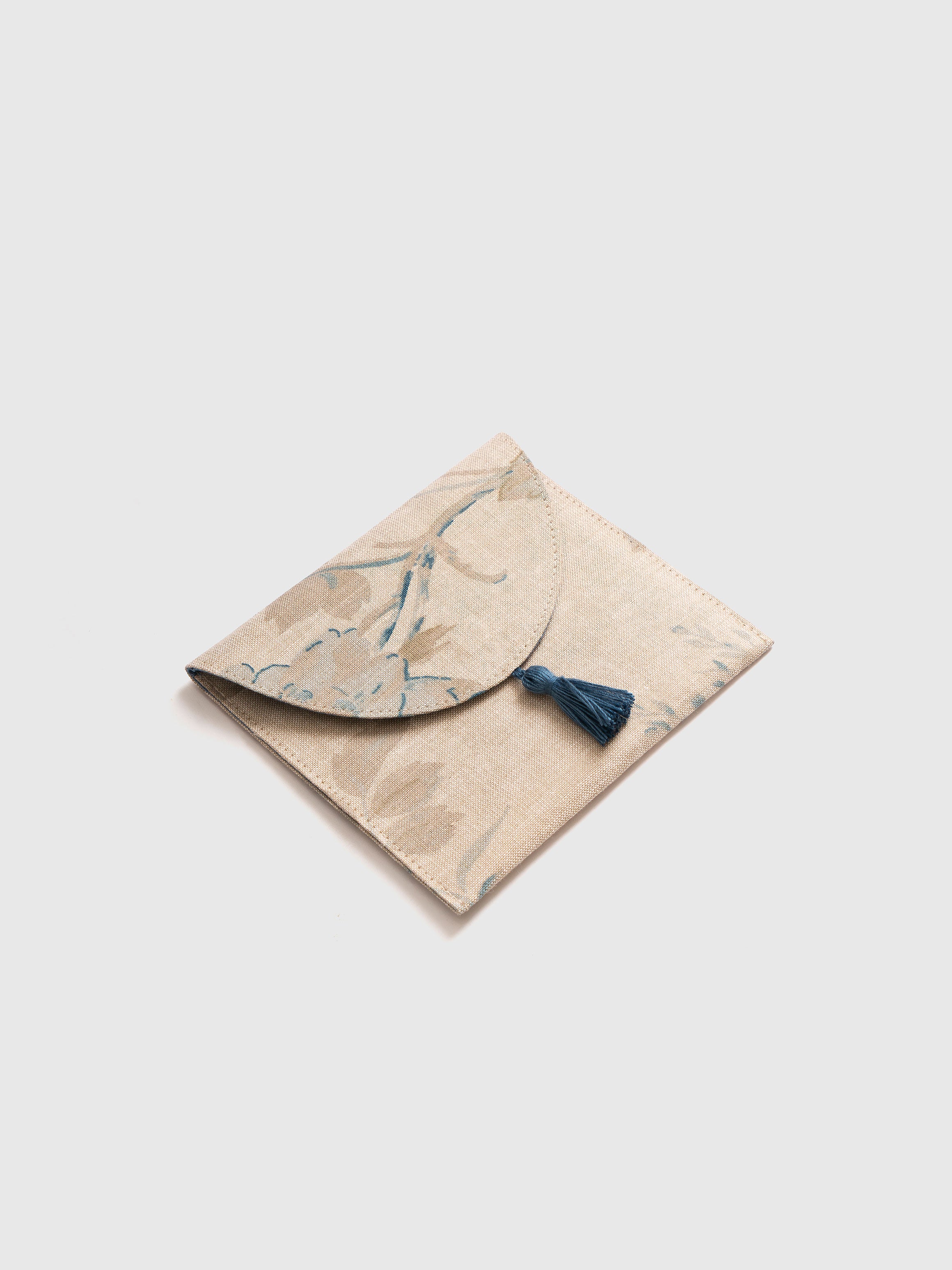 This elegant fabric pouch blends charm with functionality. Adorned with a delicate blue tassel, it features a soft floral print that adds timeless appeal. The inside lining is fitted with a discreet magnetic closure, ensuring your essentials stay secure. Perfect for carrying small accessories or gifting, it’s a stylish mix of simplicity, utility, and refined design.