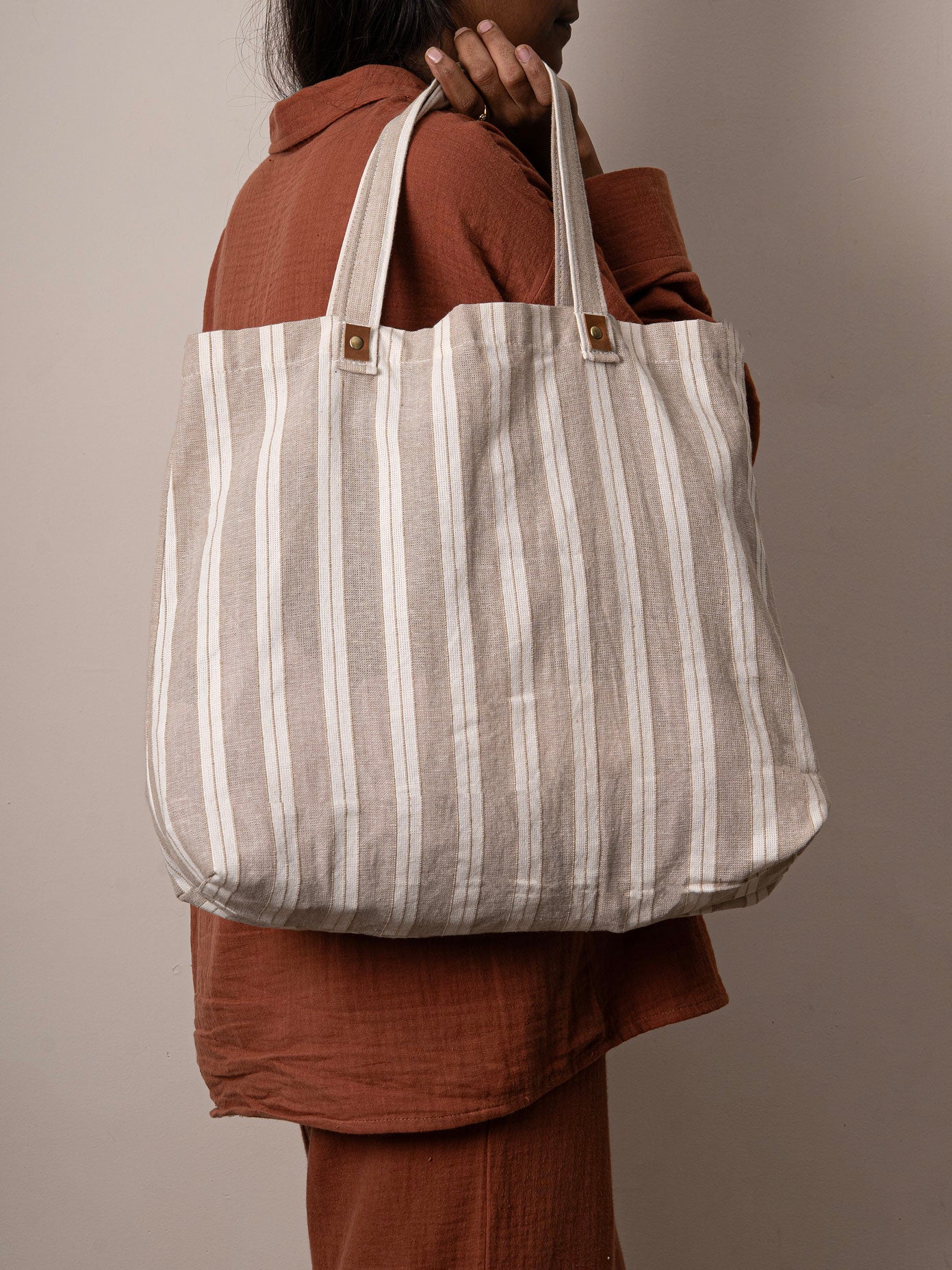 The Classic Stripe Tote pairs neutral stripes with subtle leather accents for a timeless look that fits your life. Spacious enough for your work gear, market hauls, or weekend necessities, it’s sturdy and effortless to carry. From busy mornings to laid-back afternoons, this tote makes every day feel a little more put together.