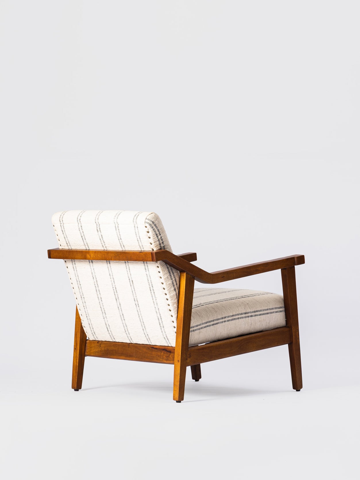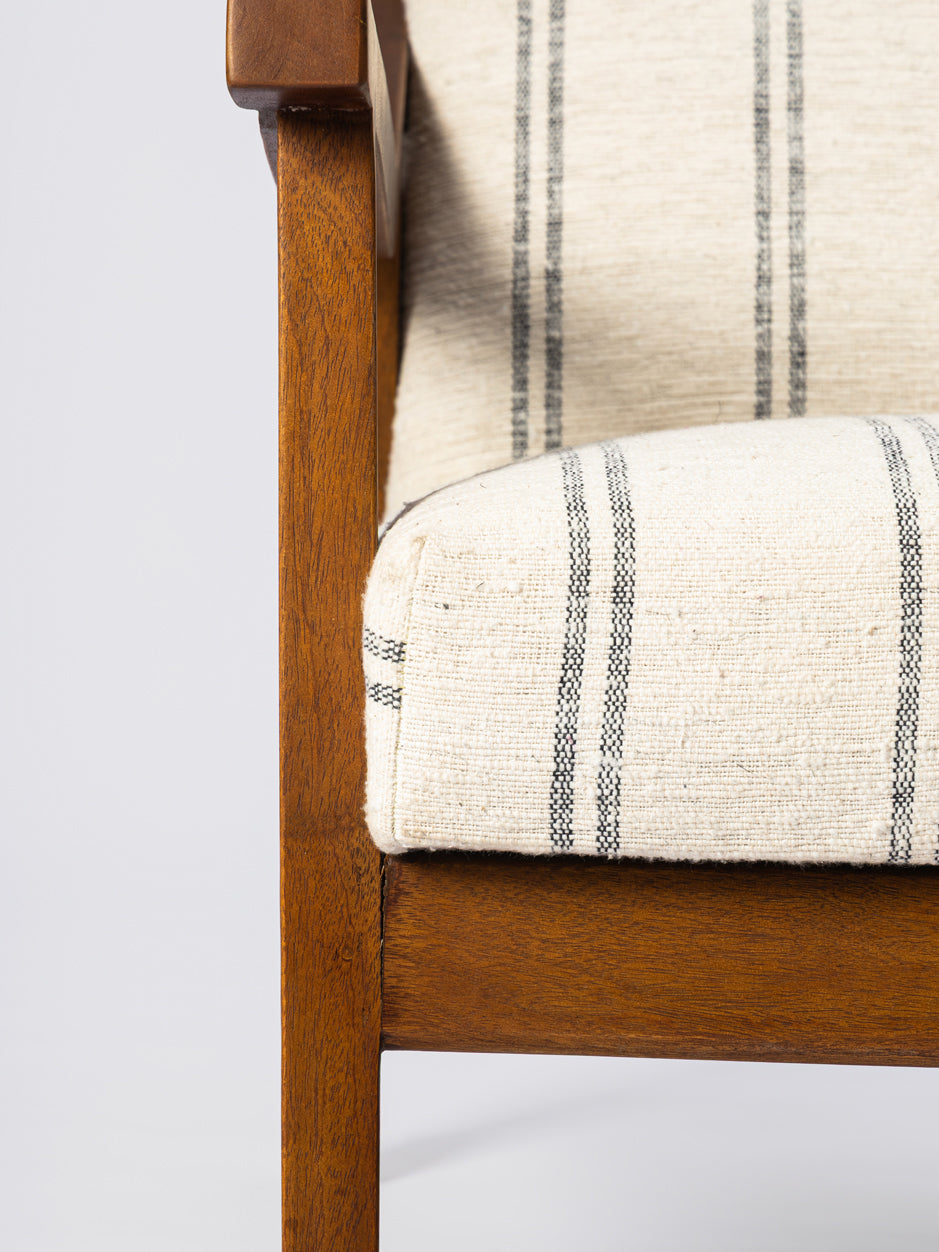 The Lithara Wooden Upholstered Armchair is a neutral statement piece that adapts effortlessly to any décor. Upholstered in cream-toned striped fabric, it brings soft sophistication, while the wooden frame adds structure and durability. Its plush seat and ergonomic backrest ensure comfort, making it ideal for versatile use. Perfect for modern, rustic, or transitional interiors, Lithara serves as both seating and a style-enhancing accent. A timeless chair designed for homes that value balance and comfort.