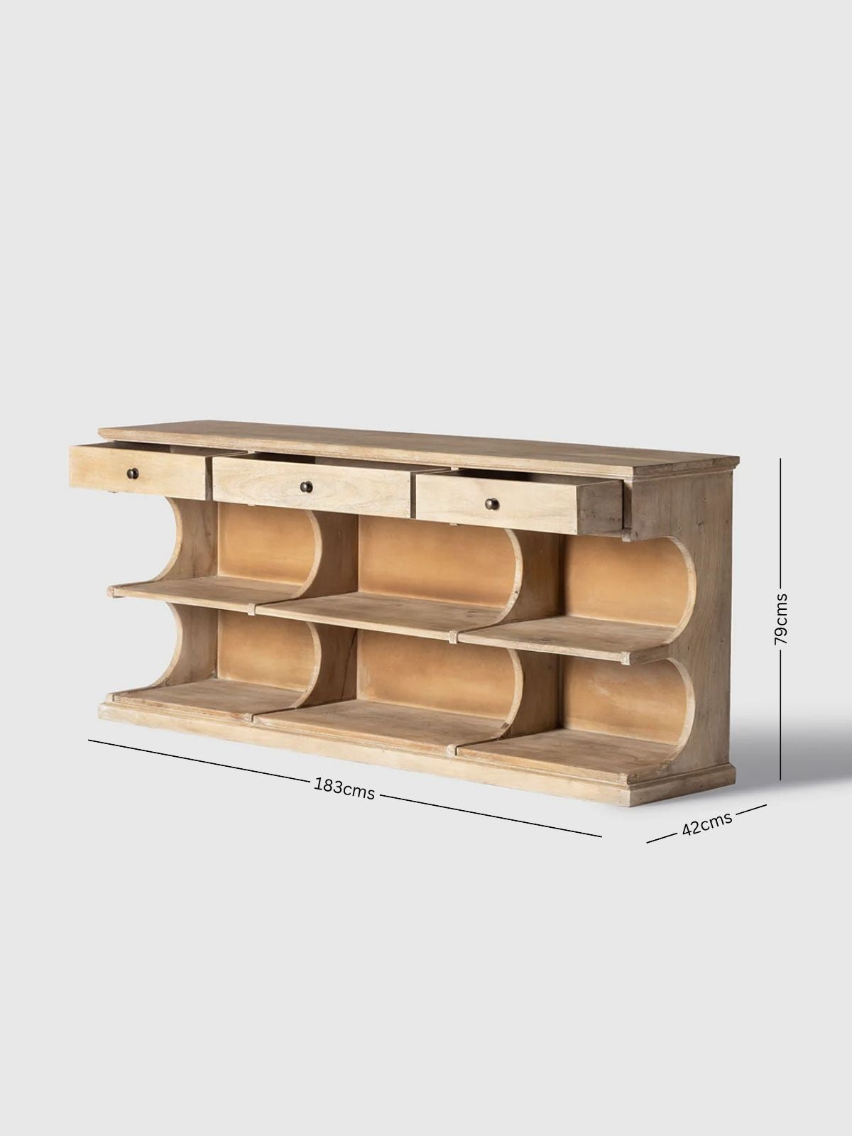 The Matteo Wooden Console Table is a versatile storage and display piece designed to blend functionality with timeless craftsmanship. Crafted from solid wood, the console features a warm natural finish that highlights the beauty of the grain. Two drawers provide convenient storage for small essentials, while the open cubby shelves below offer generous space for baskets, books, or décor accents. With its balanced proportions and clean silhouette, the Matteo console table works beautifully in entryways, living rooms, or dining spaces, adding warmth, practicality, and understated elegance to modern interiors.