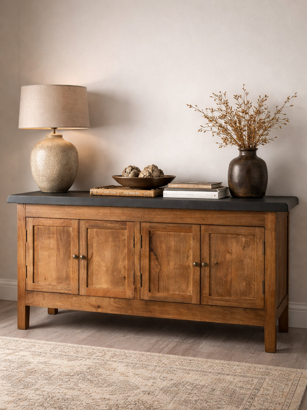The Spezia Wooden Sideboard is a beautifully crafted storage piece that combines timeless design with practical functionality. Made from solid wood, the sideboard showcases rich natural grain and a clean, structured silhouette. Multiple cabinet compartments provide ample storage for dinnerware, linens, or everyday essentials while keeping your space organized. The sturdy tabletop offers additional space for décor or serving needs. Ideal for dining rooms, living spaces, or entryways, the Spezia sideboard brings warmth, durability, and classic craftsmanship to modern interiors.