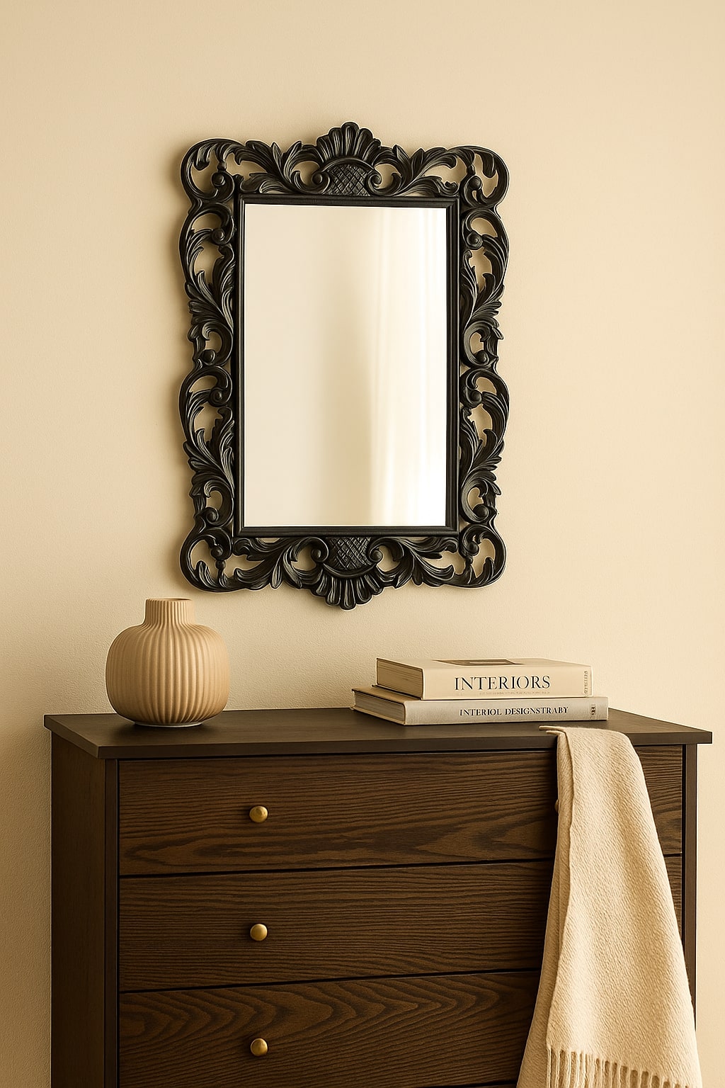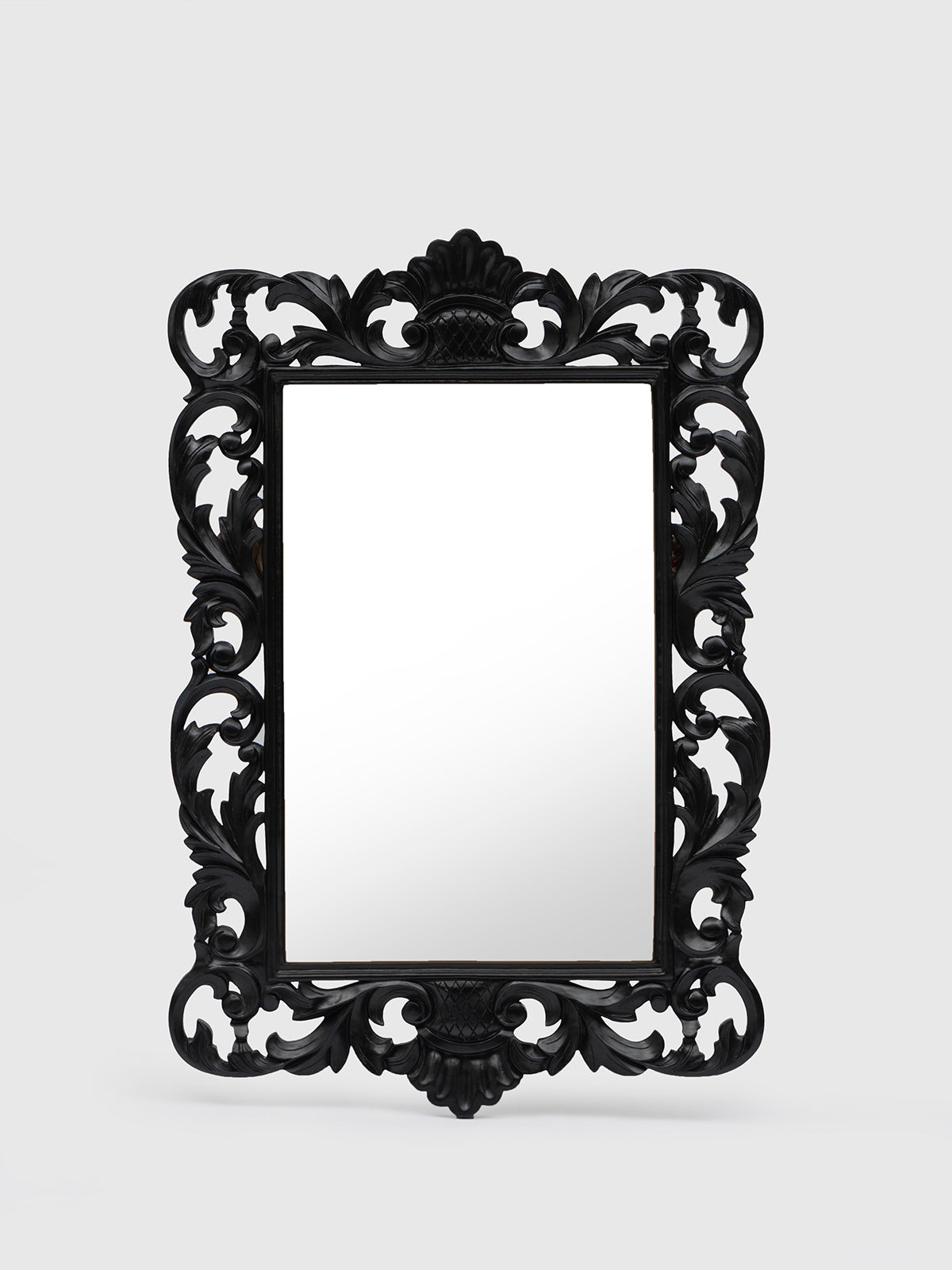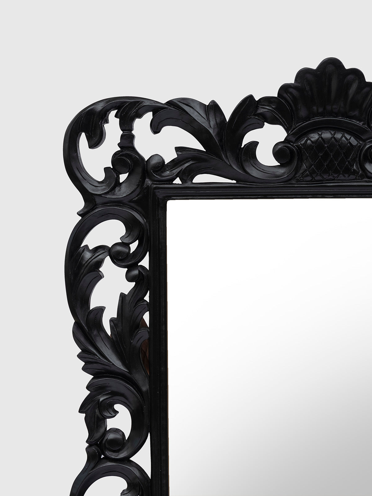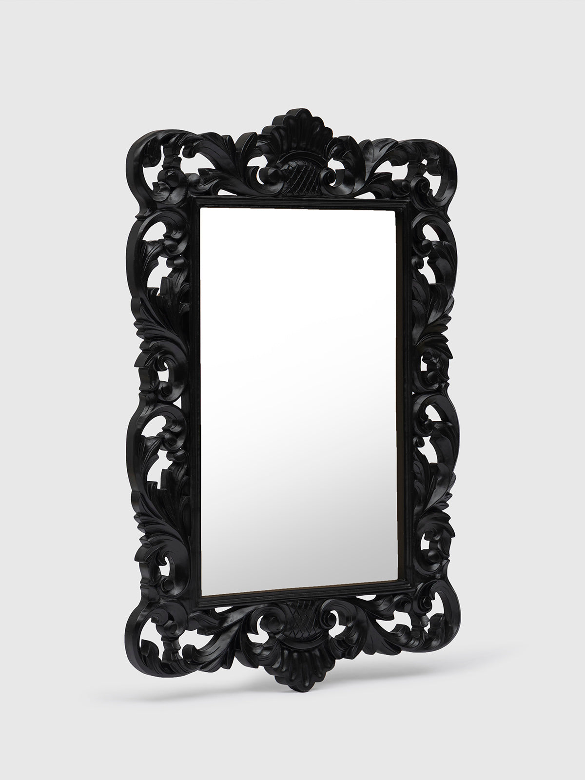 Turn any wall into a showstopper with this black carved mirror. Its dramatic detailing and baroque-inspired frame demand attention, while the deep black finish adds a modern twist. It's not just a mirror—it’s pure art.