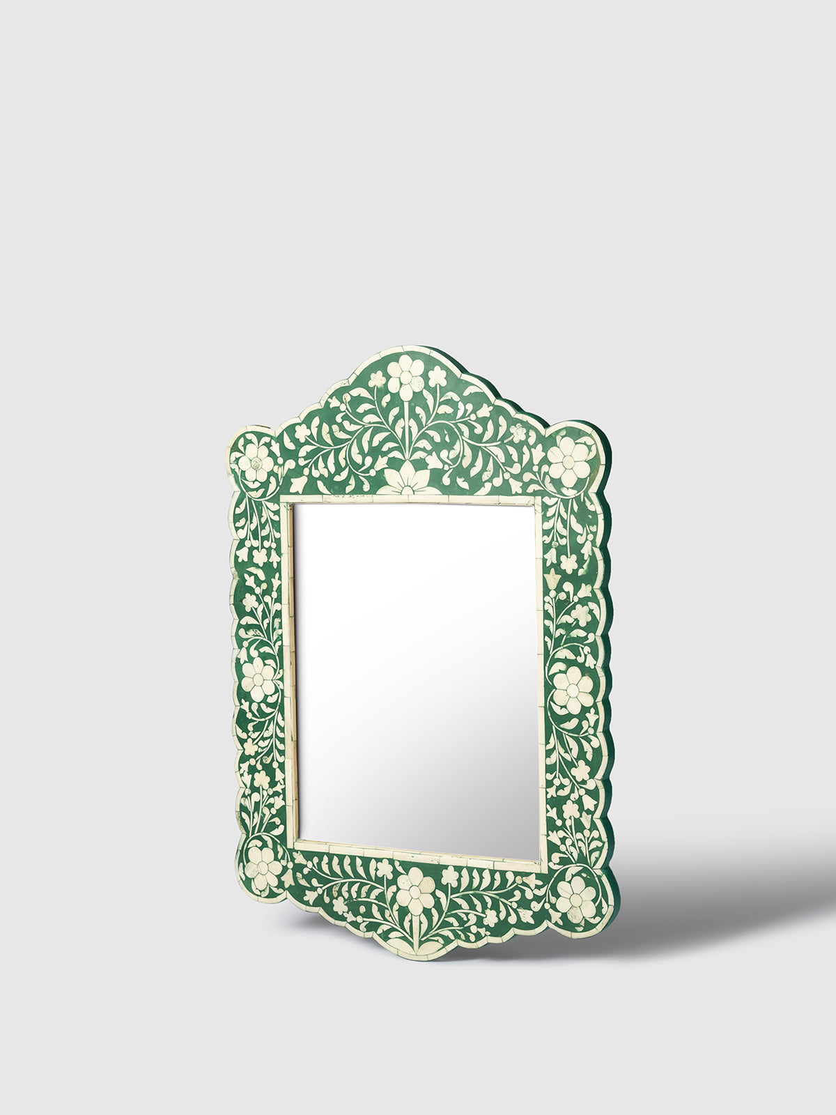 The Maracaibo Bone Inlay Mirror showcases intricate bone inlay artistry with a beautifully detailed frame that adds elegance and character to any interior. Its ornate design and delicate patterns create a striking focal point while enhancing the sense of light and space in a room. Perfect for living rooms, bedrooms, hallways, or entryways, this decorative mirror blends effortlessly with modern, eclectic, and classic interiors. Both functional and artistic, the Maracaibo Bone Inlay Mirror brings refined craftsmanship and timeless charm to your walls.