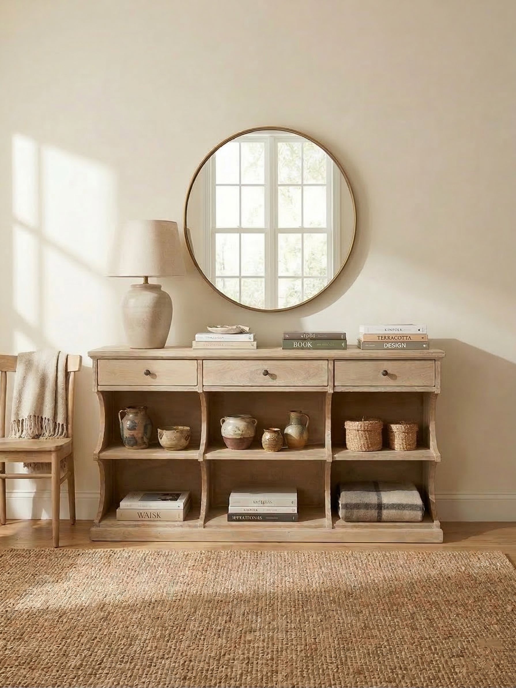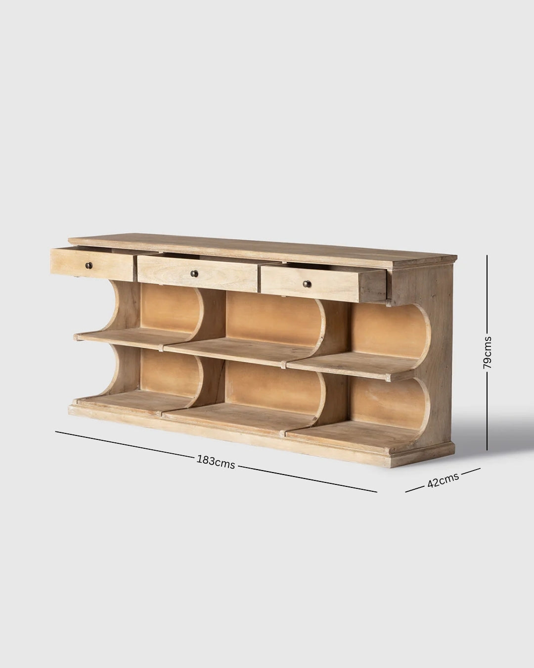 The Matteo Wooden Console Table is a versatile storage and display piece designed to blend functionality with timeless craftsmanship. Crafted from solid wood, the console features a warm natural finish that highlights the beauty of the grain. Two drawers provide convenient storage for small essentials, while the open cubby shelves below offer generous space for baskets, books, or décor accents. With its balanced proportions and clean silhouette, the Matteo console table works beautifully in entryways, living rooms, or dining spaces, adding warmth, practicality, and understated elegance to modern interiors.