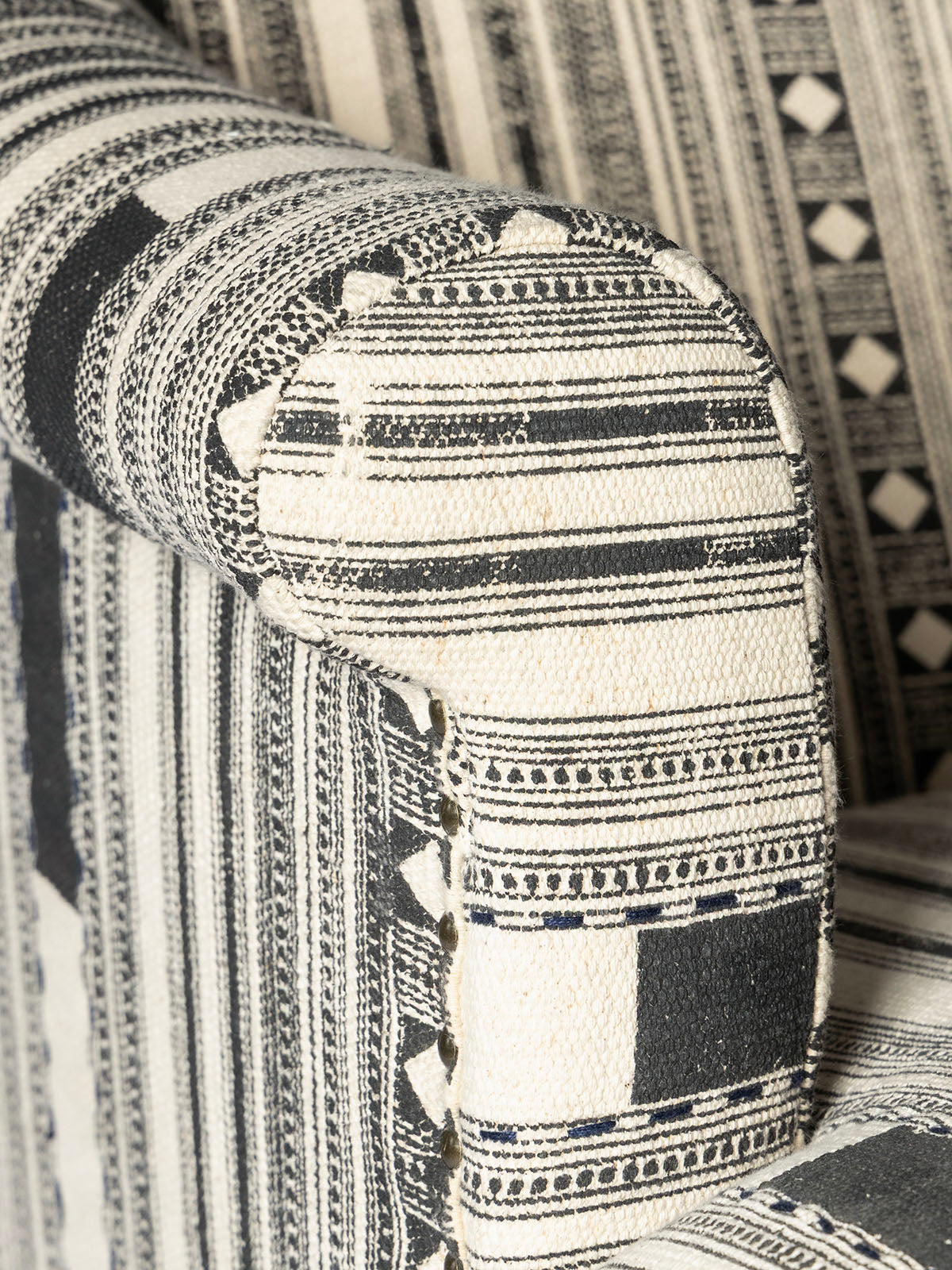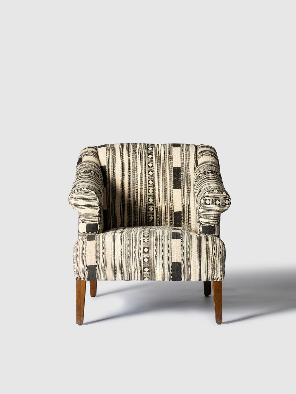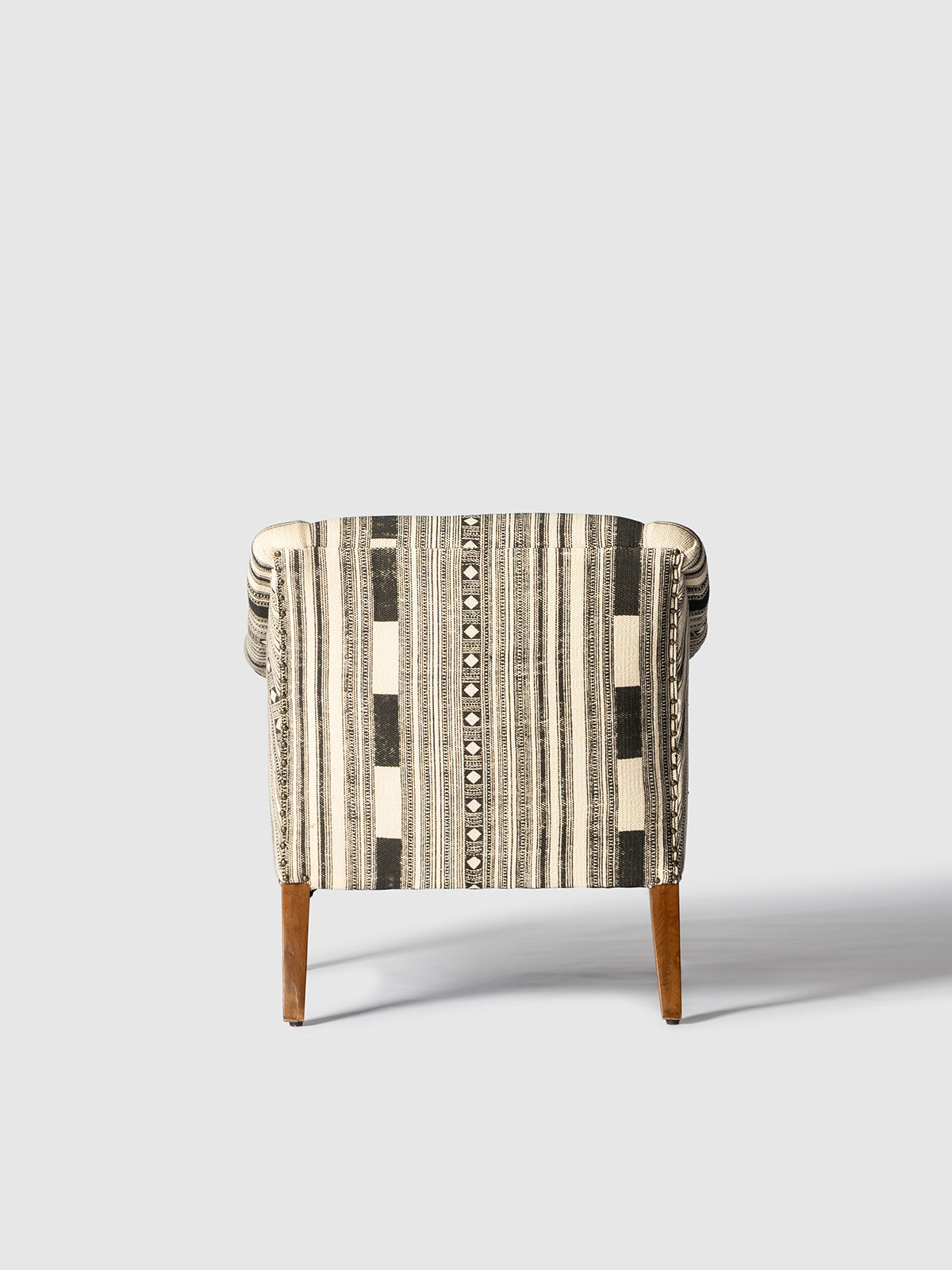 The Saphorin Wooden Upholstered Armchair is a refined seating piece that blends comfort with timeless craftsmanship. Designed with a sturdy wooden frame and gently tapered legs, the chair features soft upholstery with a textured striped fabric that adds depth and character. The curved armrests and cushioned seat provide supportive and comfortable seating, making it ideal for living rooms, bedrooms, or reading corners. With its balanced proportions and warm wooden accents, the Saphorin Armchair brings elegance, comfort, and understated style to modern interiors.