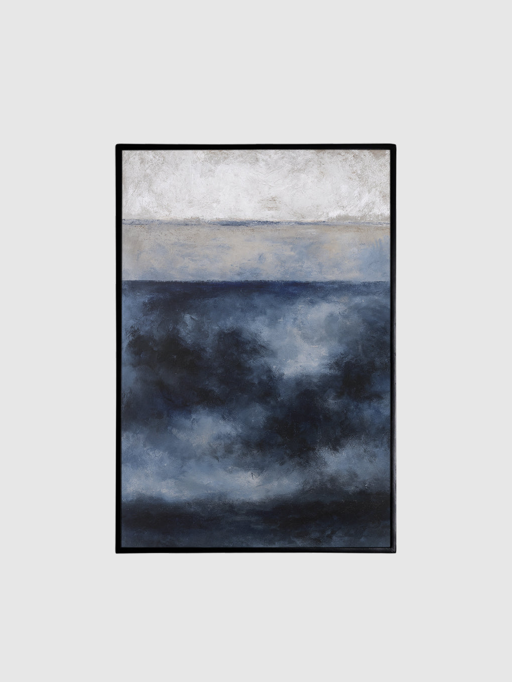 The Edge of Calm is an evocative abstract artwork that captures the meeting point between stillness and motion. Shades of deep indigo and soft gray blend seamlessly with lighter tones, creating a sense of quiet tension that resolves into harmony. This printed canvas artwork reflects the beauty of balance, where calm emerges from contrast and serenity rises from depth.