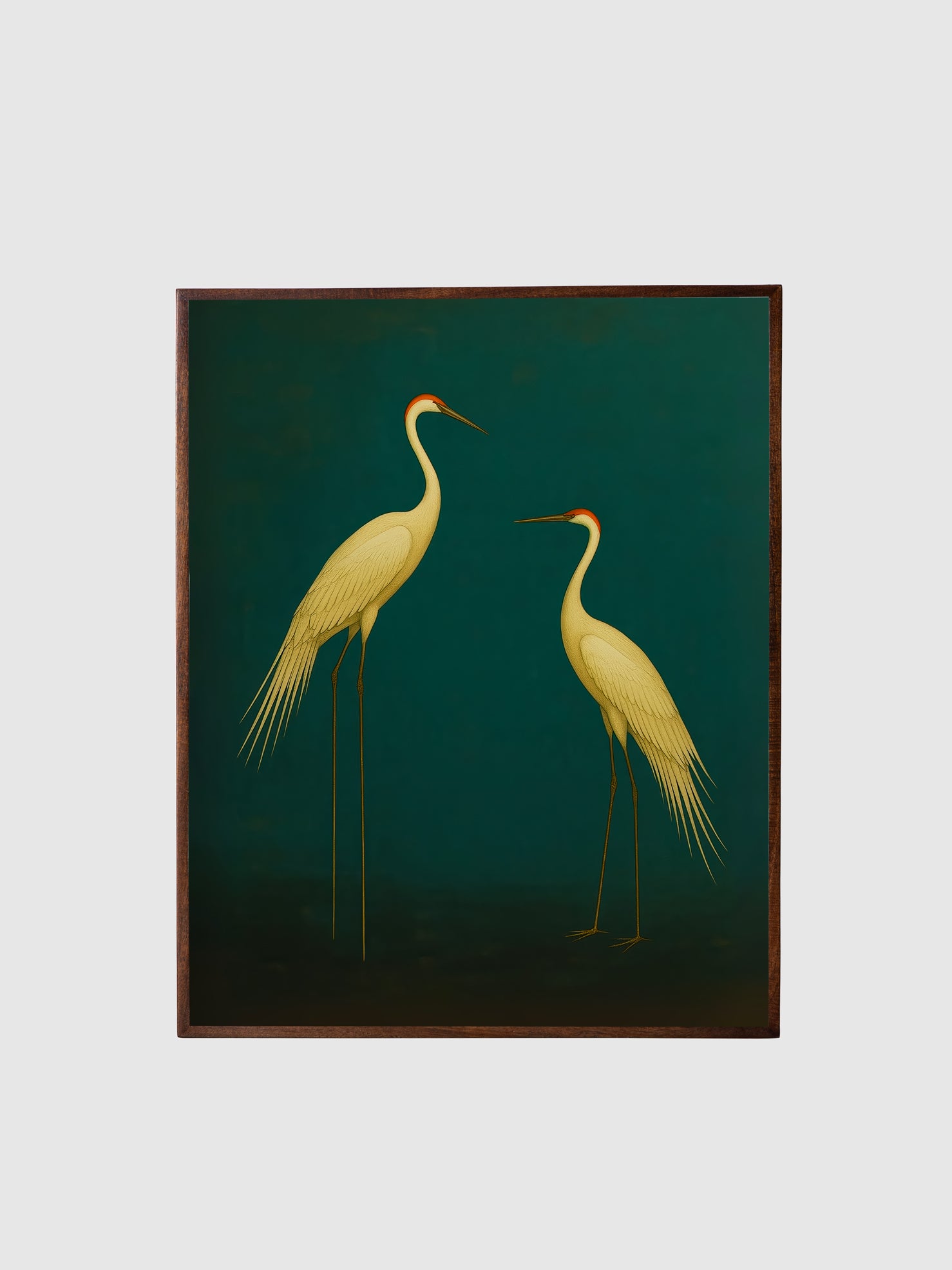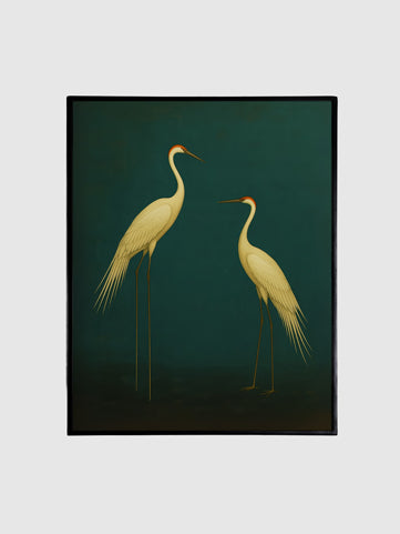 Graceful and timeless, The Eternal Pair portrays two elegant cranes standing in poised harmony against a deep, serene backdrop. Symbolizing fidelity, longevity, and enduring love, the artwork speaks to the beauty of togetherness that transcends time.