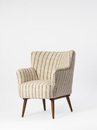 Inspired by timeless craftsmanship, the Soho Stripe Wooden Upholstered Armchair blends heritage charm with modern design. The striped fabric nods to traditional handloom patterns, while its sleek wooden legs ground it with contemporary elegance. Cushioned for comfort and styled for versatility, this armchair is ideal for cozy reading spaces, chic lounges, or refined offices. A perfect balance of old-world artistry and modern function, it becomes a striking yet practical addition to your interior design story.