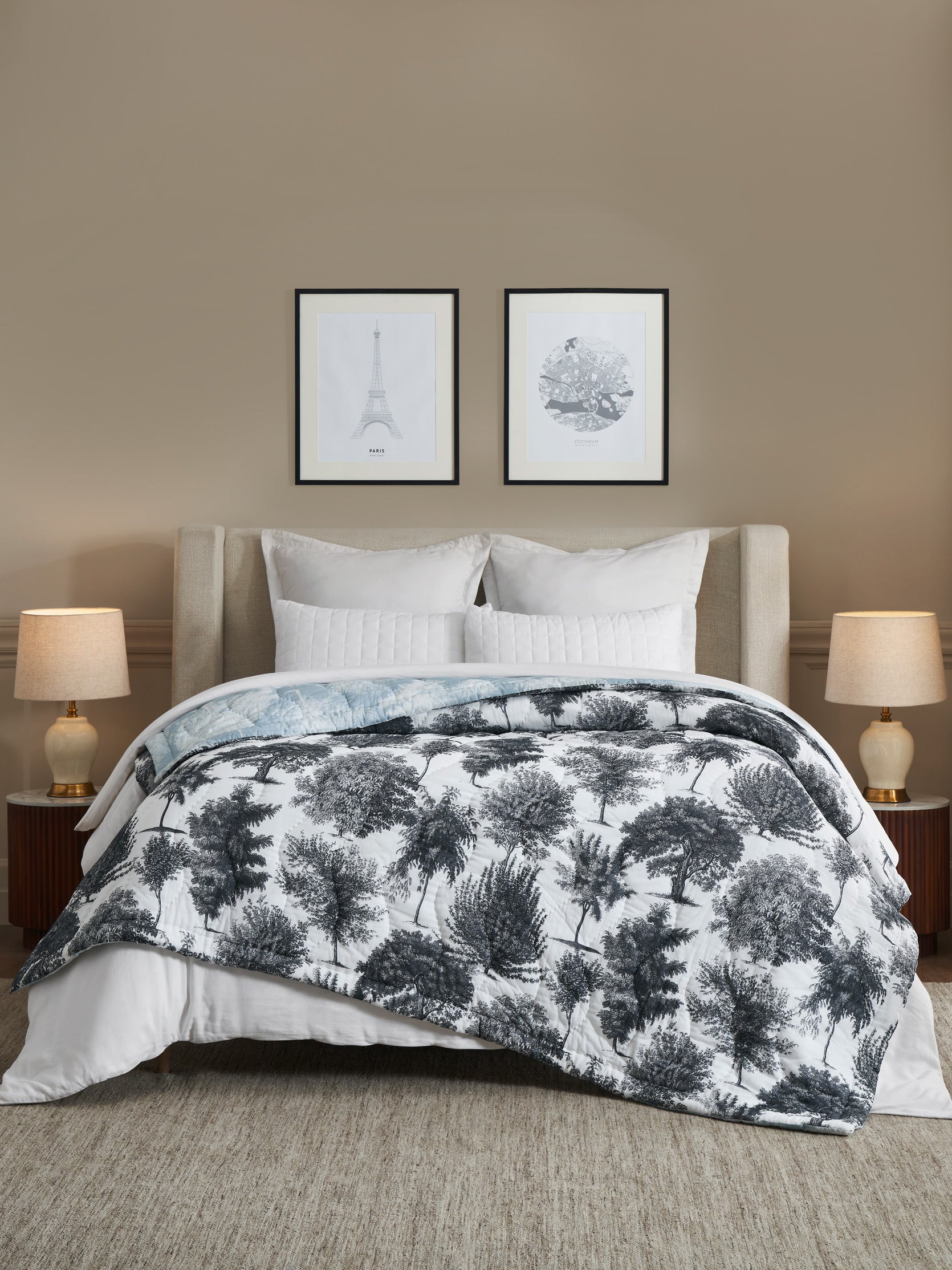 Toile Peonia Reversible Printed Quilt