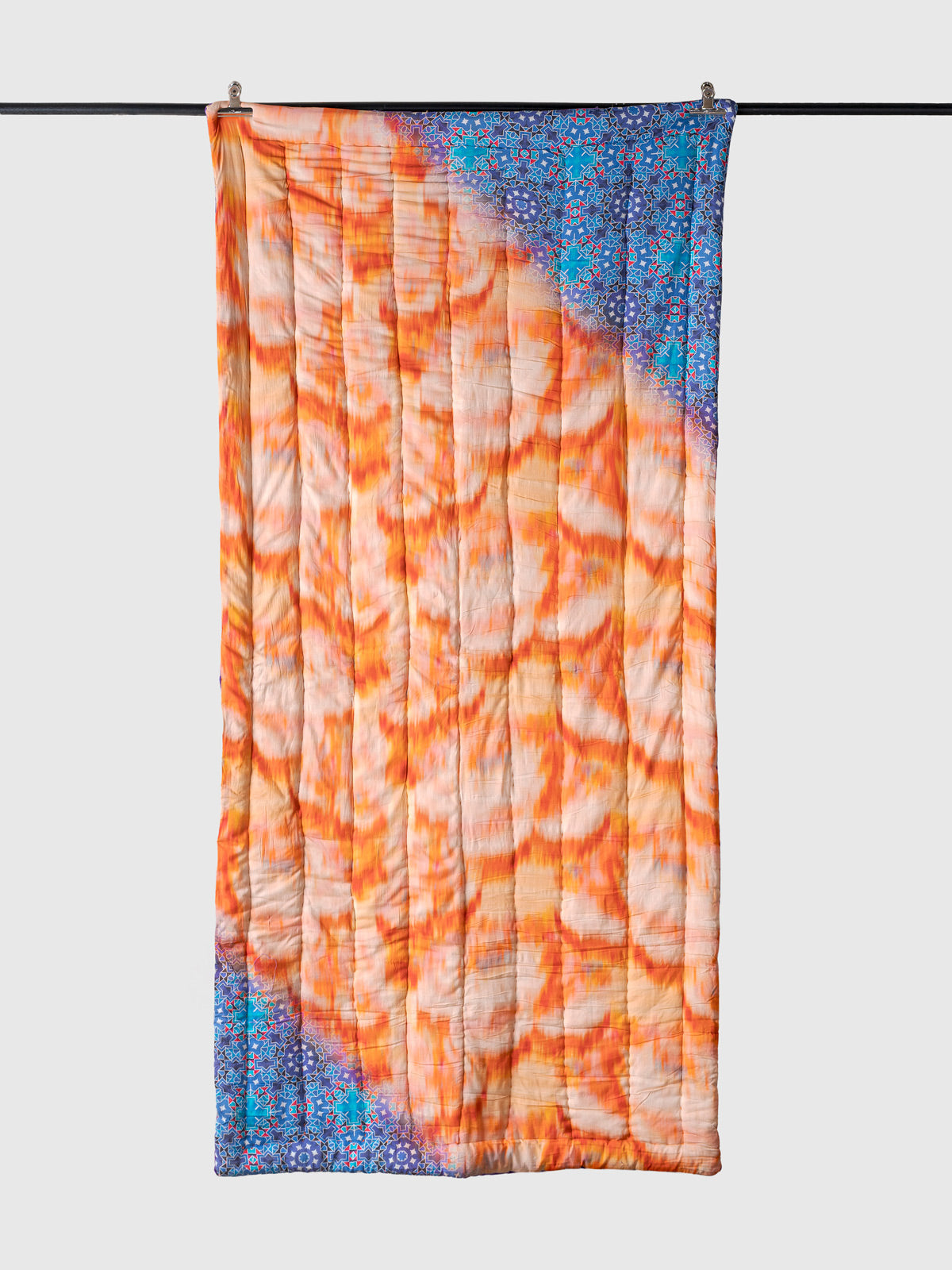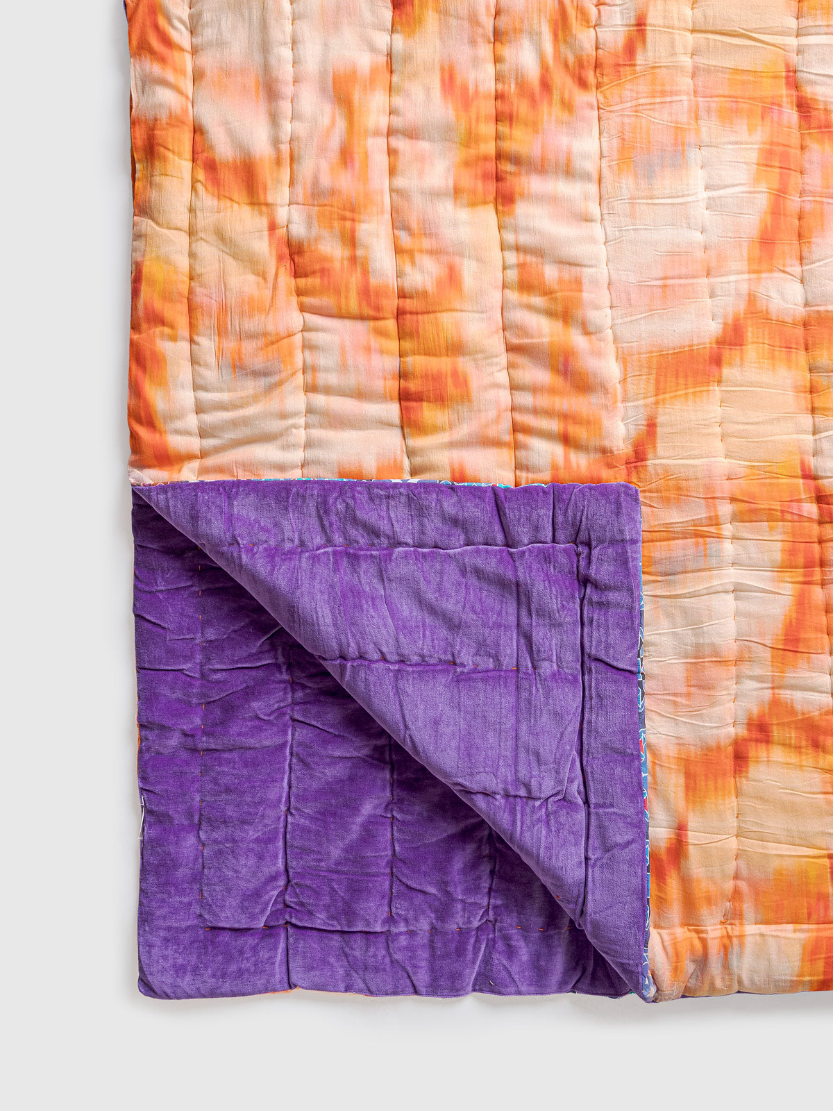 Each section is printed by hand, and every stitch is crafted with care, giving the quilt its gentle texture and signature handmade feel. Lightweight, breathable, and thoughtfully designed, it adds a vibrant yet refined presence to any bedroom.