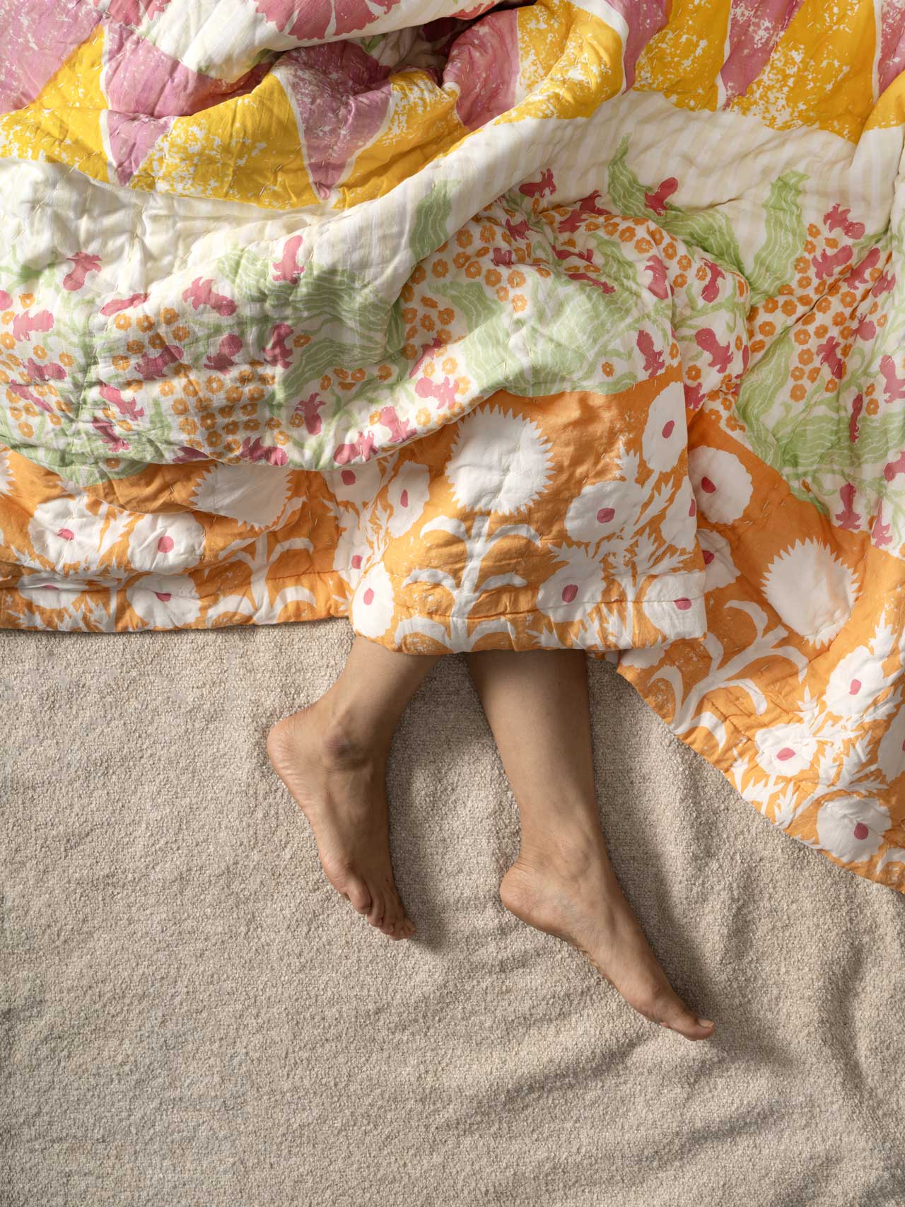 Brighten up your space with this vibrant floral quilt, featuring cheerful patterns in yellow, pink, and green. Perfect as a cozy layer or decorative throw, this quilt's lively botanical design brings a fresh, summery feel to bedrooms or living areas, making it a delightful addition to bohemian or cottage-inspired decor.