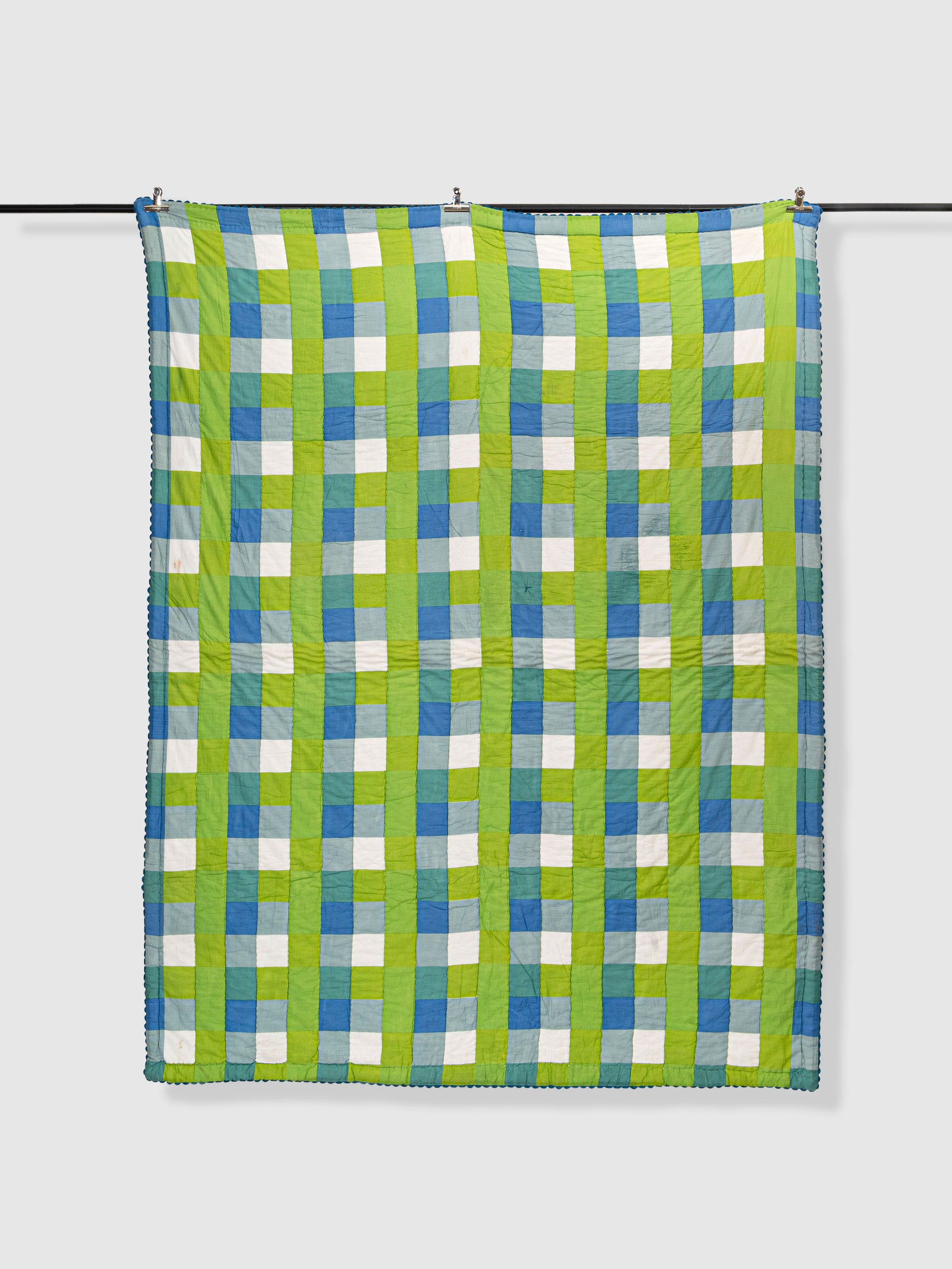 Add a retro touch with this vintage checkered quilt in striking blue and green tones. This hand-stitched cotton quilt blanket brings a playful, nostalgic vibe to your bed or living space. Ideal for layering or as a statement throw quilt, it combines classic patchwork style with modern comfort.