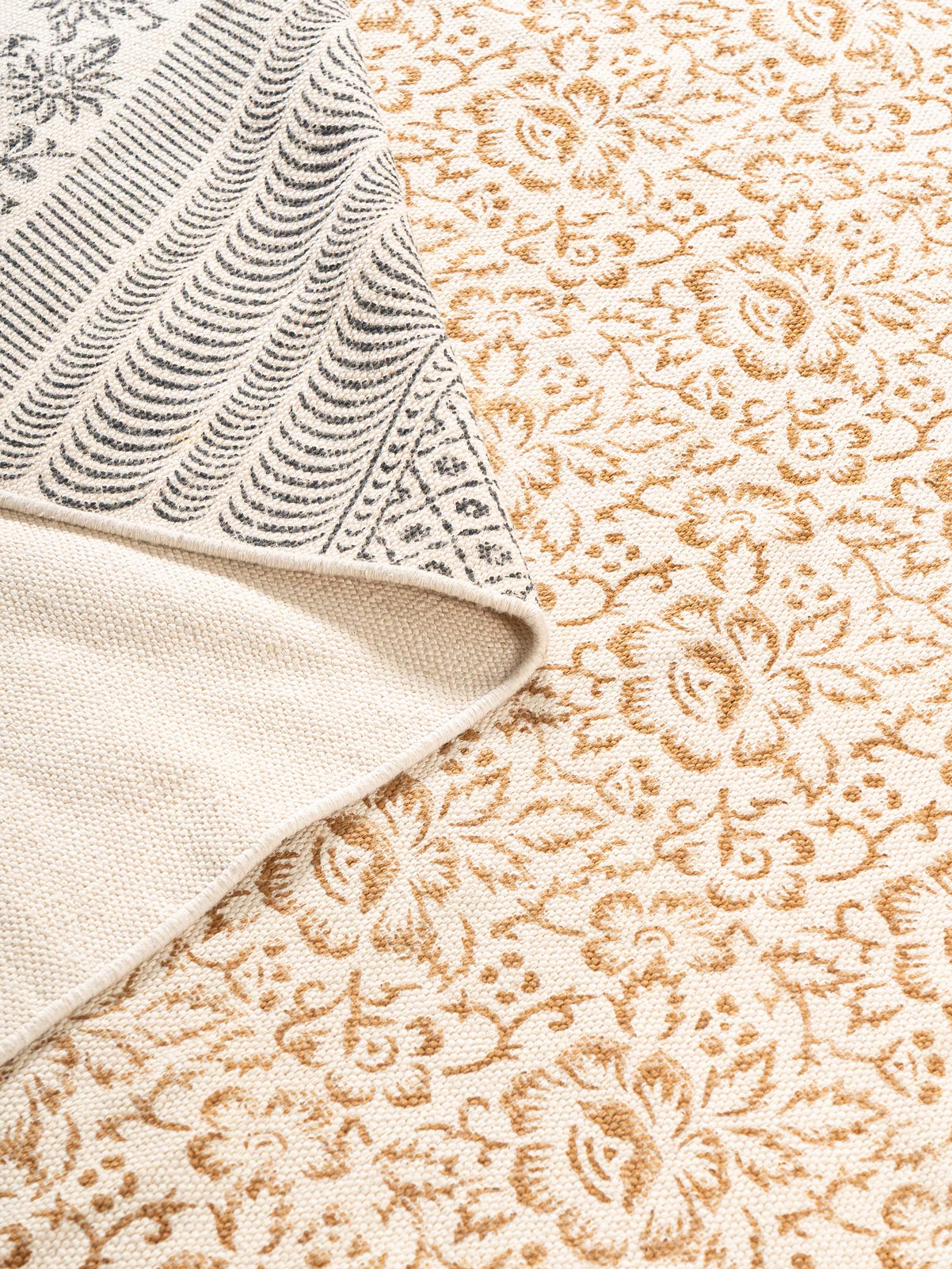The Sandstone Mist Rug features a harmonious pairing of warm ochre and soft grey, enriched by intricate handwoven patterns. Its subtle color contrast and artisanal craftsmanship make it perfect for creating a calm, grounded atmosphere while adding visual interest to contemporary, bohemian, or traditional interiors.