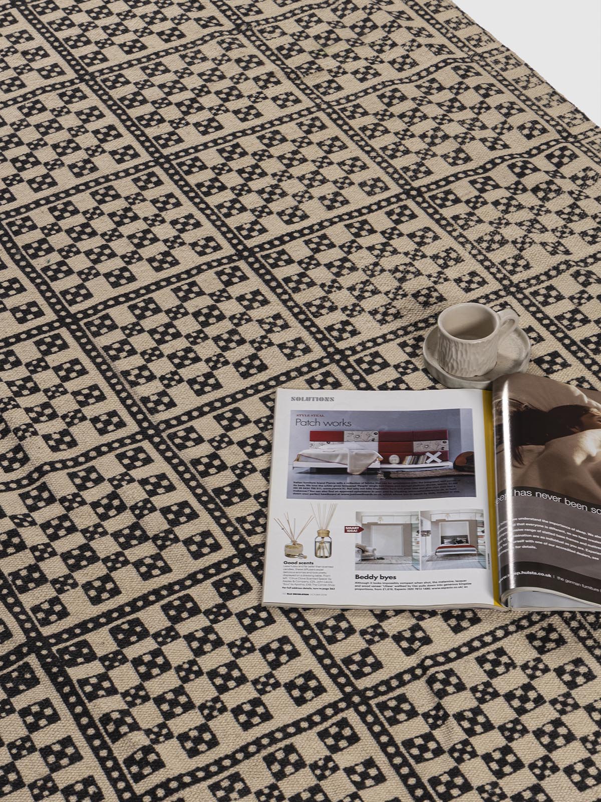 Rooted in the idea of meaningful time, Tithi brings quiet purpose into your home. Printed by hand on cotton, its delicate blocks echo the symmetry of ritual-daily, sacred, and slow. It’s designed with intention, made by artisans whose hands preserve rhythm, order, and tradition. A rug that doesn’t just fill a space-it honours it.