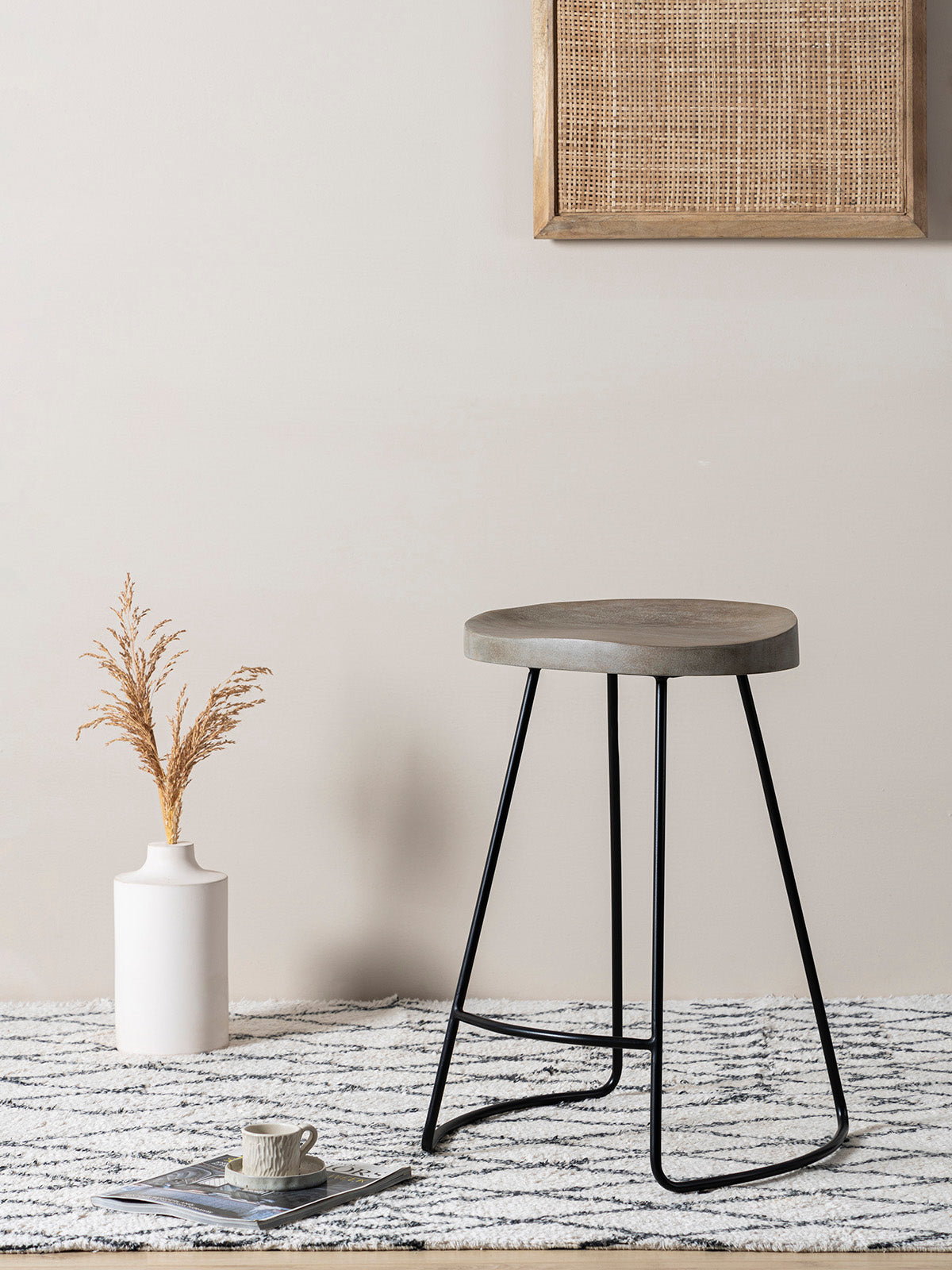 An ode to minimal design, our Ogha Stool is a perfect blend of modern minimalism and natural textures. The slender iron metal frame supports a slab of mango wood where the clean design and subtle textures bring forth a sense of elegance and sophistication.