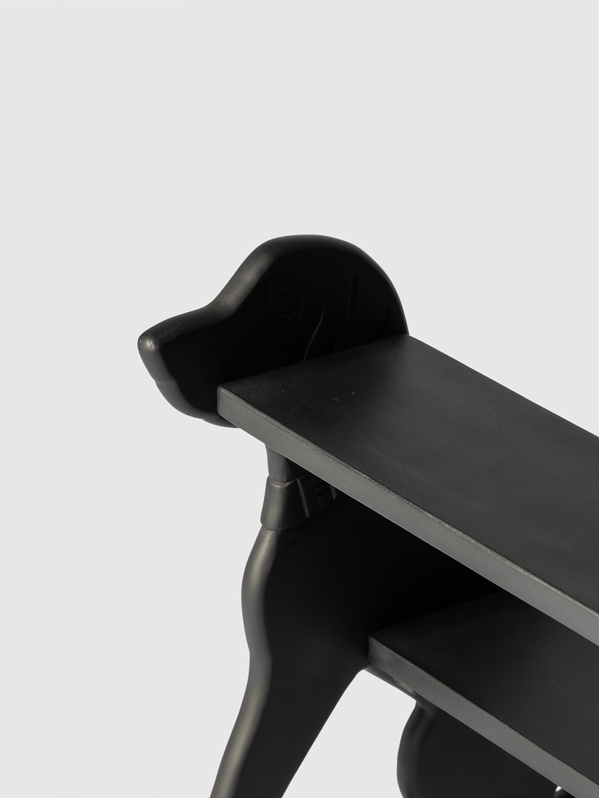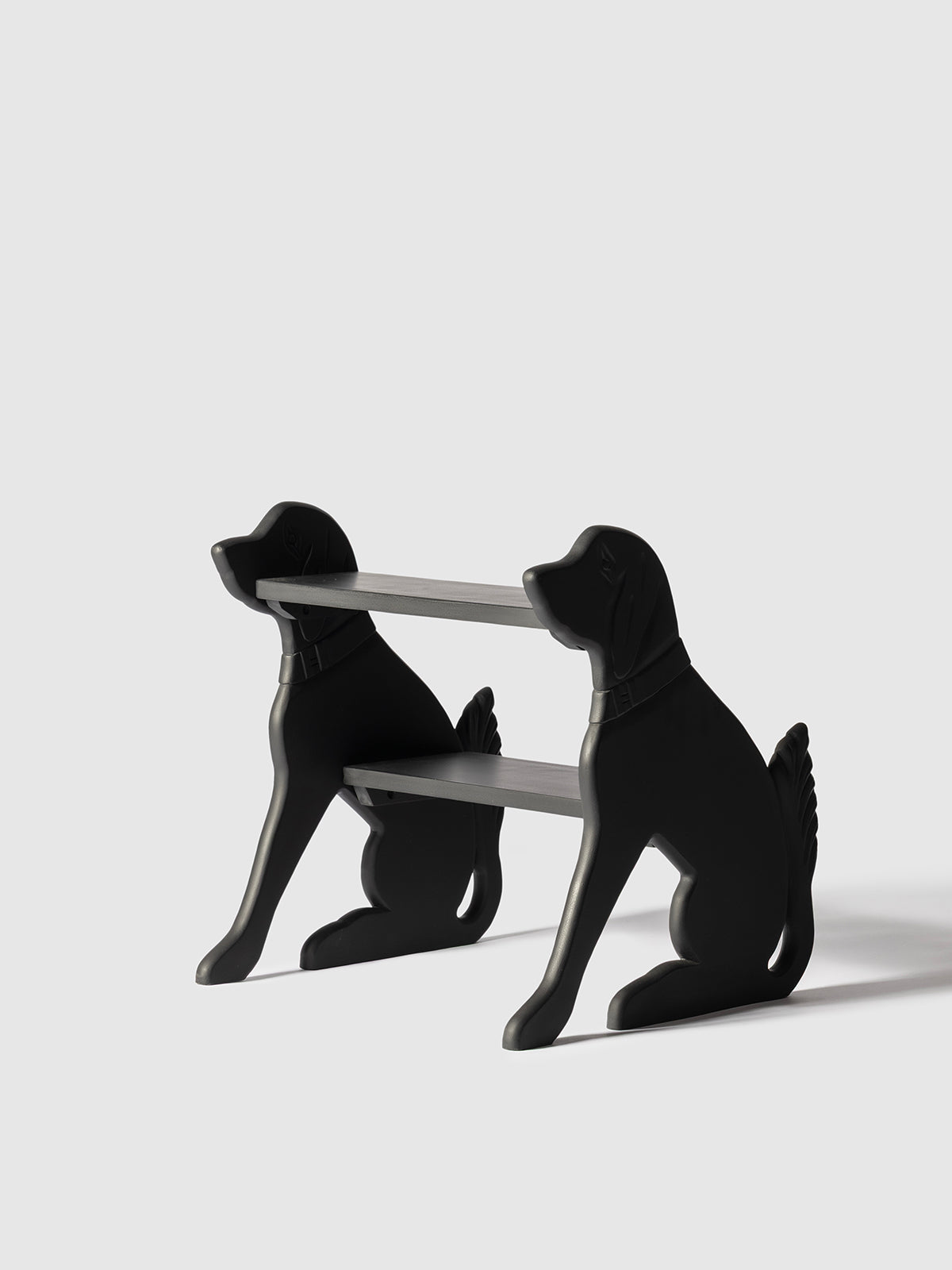 Infuse personality into your décor with this whimsical dog-shaped tiered shelf. Finished in a sleek matte black, the playful silhouette functions as a sturdy display for books or small collectibles. It is a creative, conversation-starting piece that brings a sense of charm and artistic flair to any room.