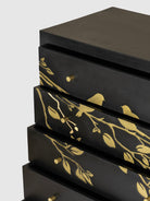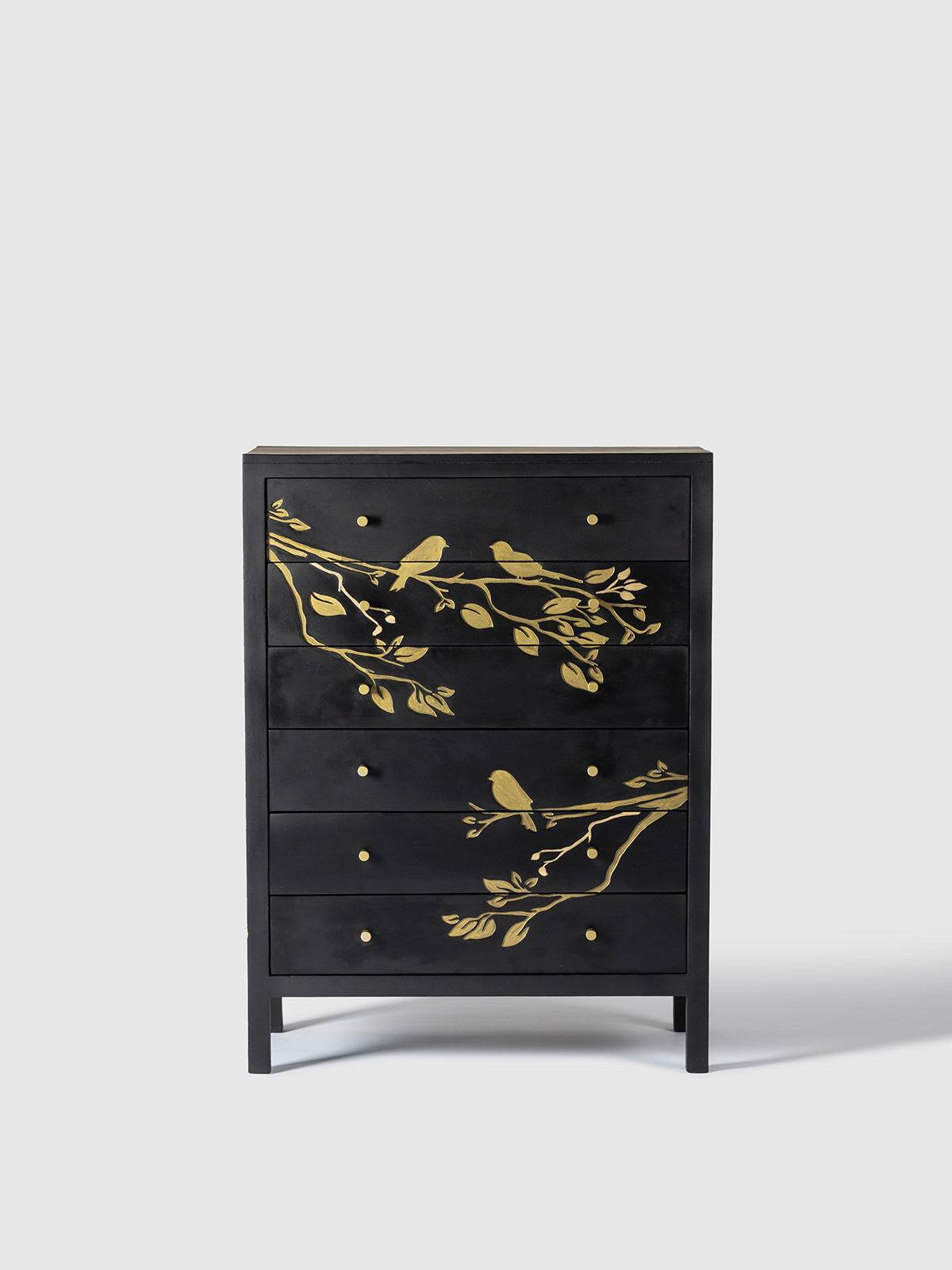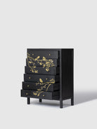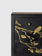 The Calido Wood Carved Chest of Drawers is a striking storage piece that blends artistic craftsmanship with functional design. Crafted from solid wood, the chest features beautifully carved panels with delicate botanical motifs that create a rich visual texture. The deep drawers provide generous storage for clothing, linens, and everyday essentials while maintaining an elegant appearance. With its bold finish and intricate detailing, the Calido chest of drawers makes a statement in bedrooms, living rooms, or entryways, adding character, warmth, and timeless sophistication to modern interiors.