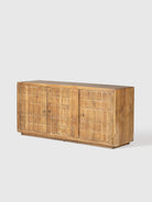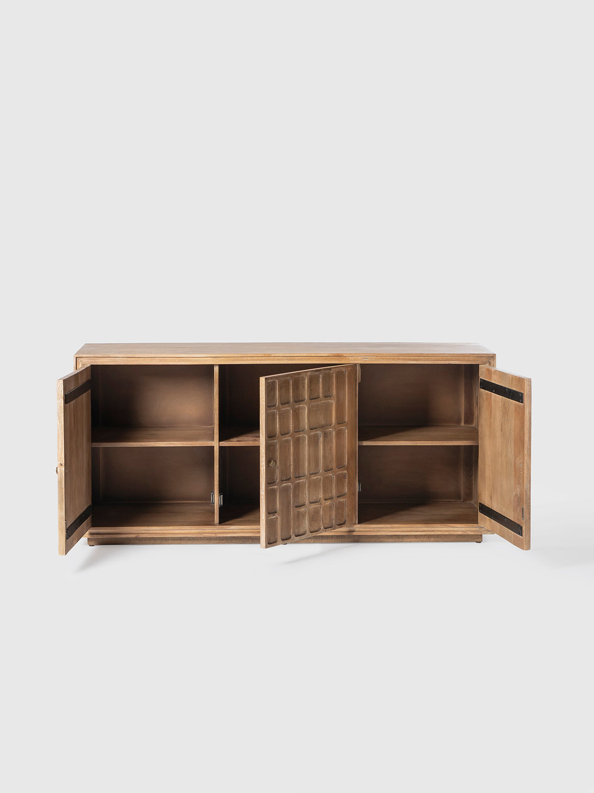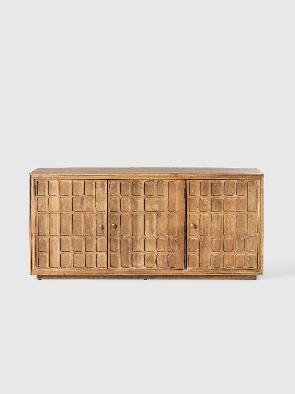 Looking to add warmth and character to your space? This hand-carved mango wood sideboard is a total showstopper! With its textured geometric doors and spacious storage, it’s both functional and artful. Perfect for styling with your favorite ceramics or greenery—it’s the piece your living or dining room’s been waiting for.